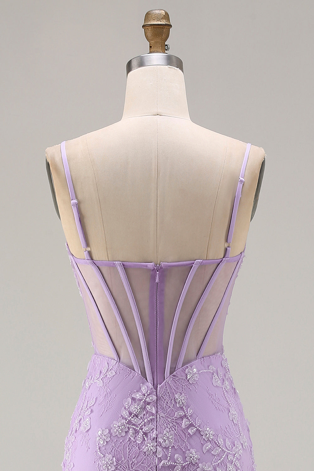 Blue Mermaid Sheer Corset Lace Appliqued Beaded Long Prom Dress with Slit