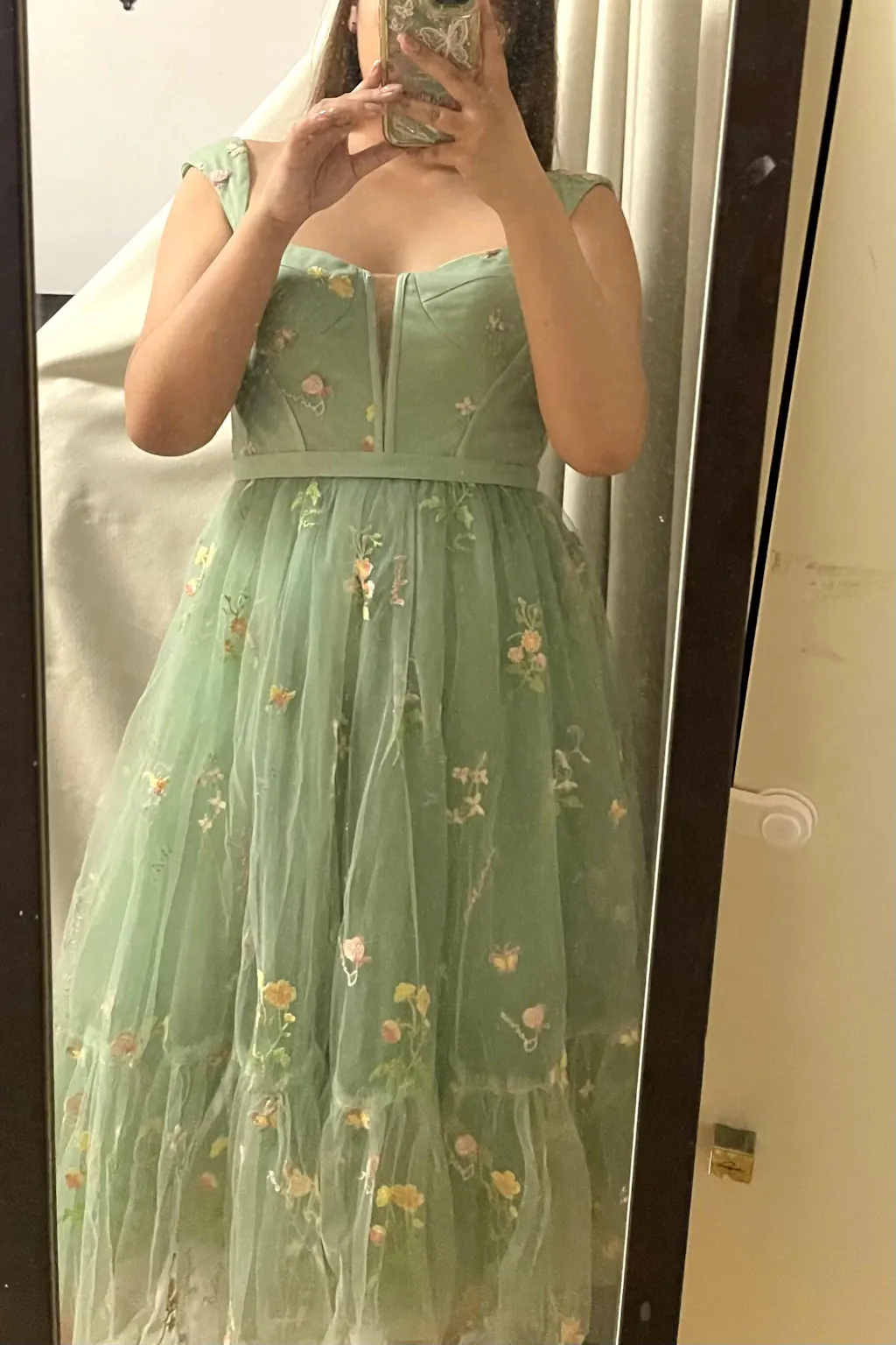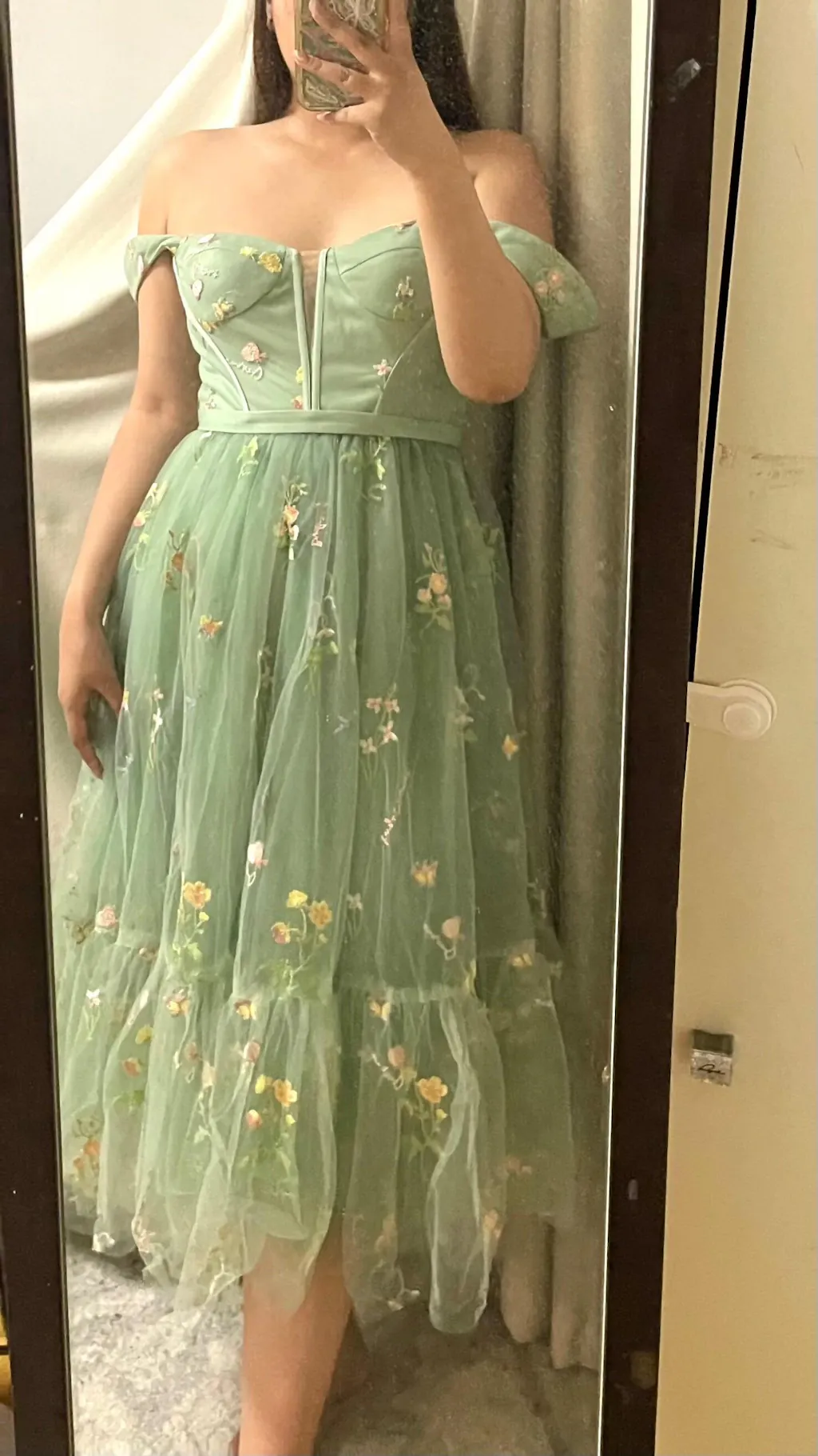 My daughter wore this dress for Senior Homecoming and the theme was''nchanted Forest '' he Floral Embroidery and the Tulle was gorgeous.She looked like a Princess,he fit was perfect and every detail in design was beautiful.