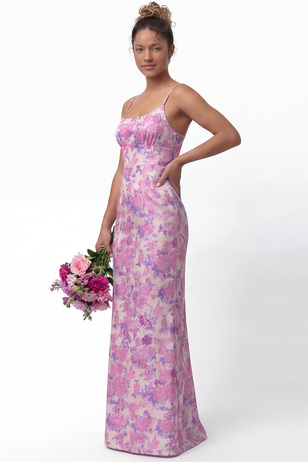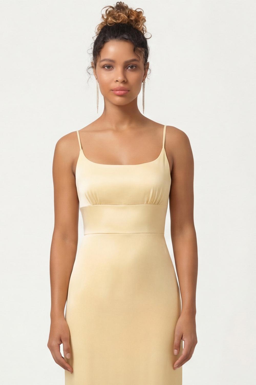 Daffodil Sheath Spaghetti Straps Long Bridesmaid Dress