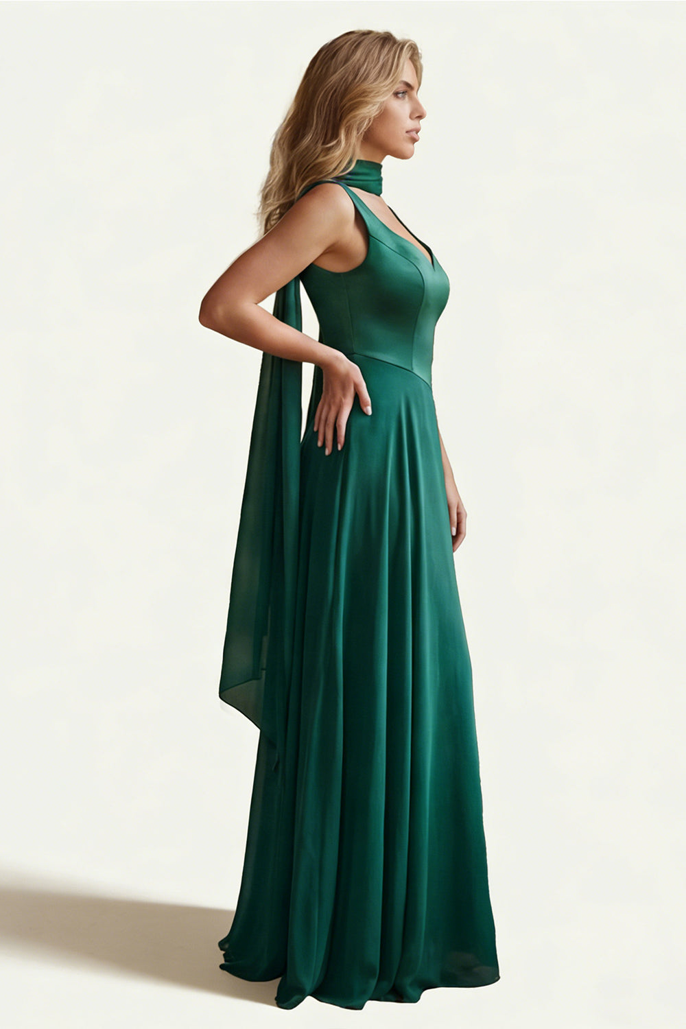 Dark Green Satin A Line Long Bridesmaid Dress with Streamer