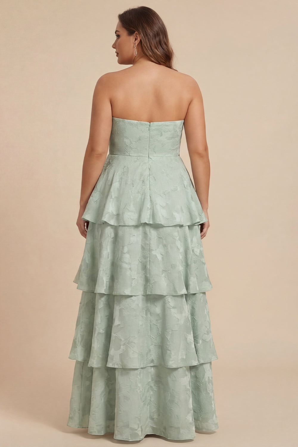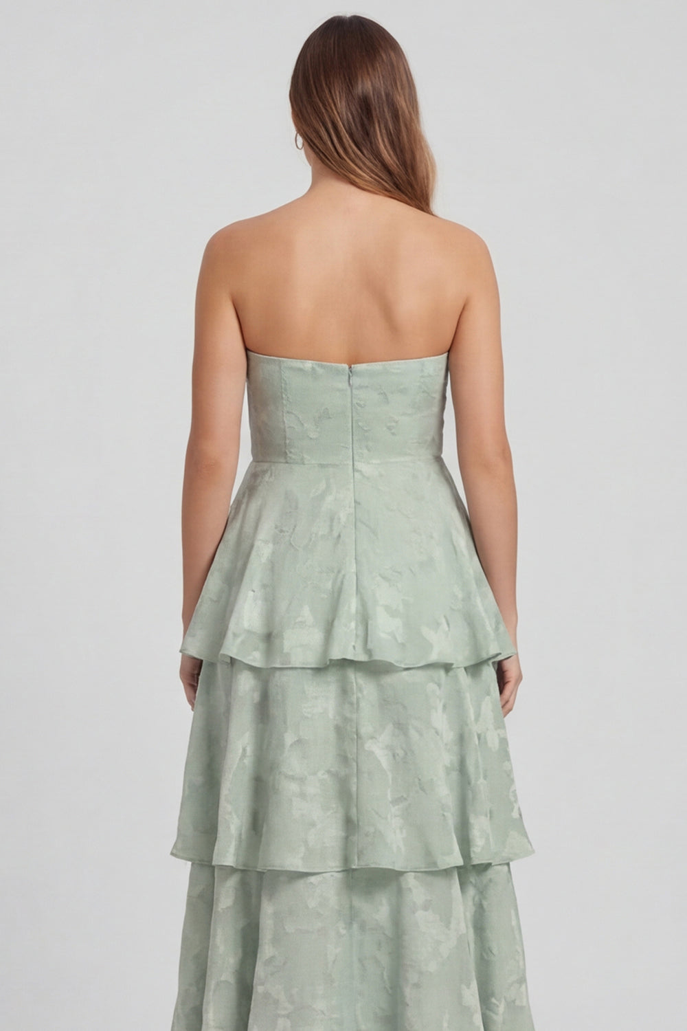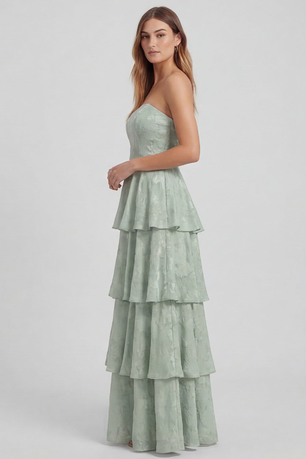 Sage Green A Line Strapless Tiered Ruffle Long Bridesmaid Dress