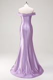 Sparkly Lilac Mermaid Off The Shoulder Ruched Long Prom Dress