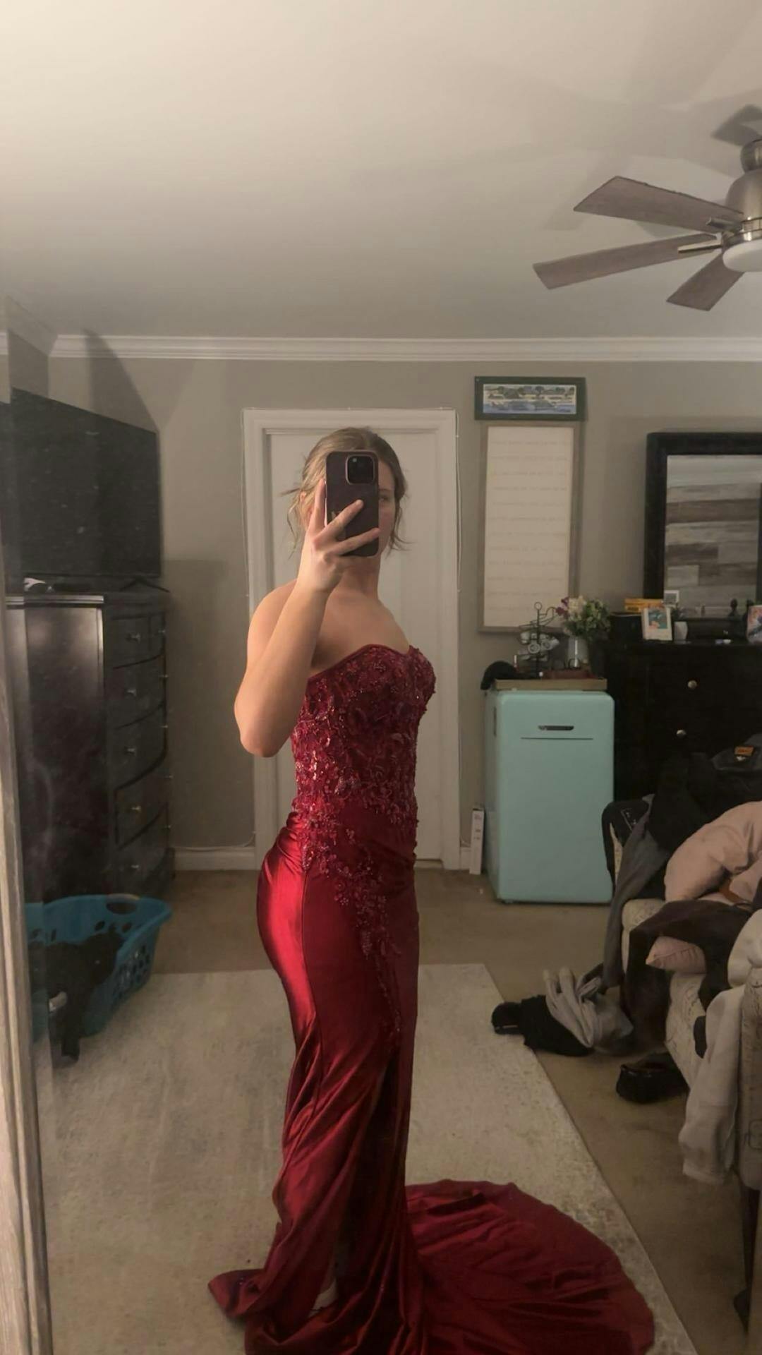 This red gown is an absolute head-turner! The satin fabric has such a rich, luxurious sheen, and the sequin detailing adds just the right amount of sparkle without being over-the-top. The fit is flawless—hugs curves perfectly and the slit adds a sexy, elegant touch. Wore it to a gala and got so many compliments! Worth every penny for a showstopping look.