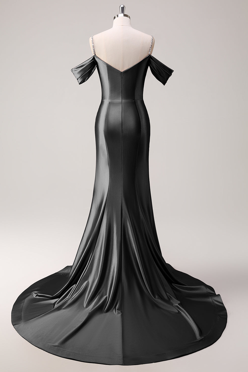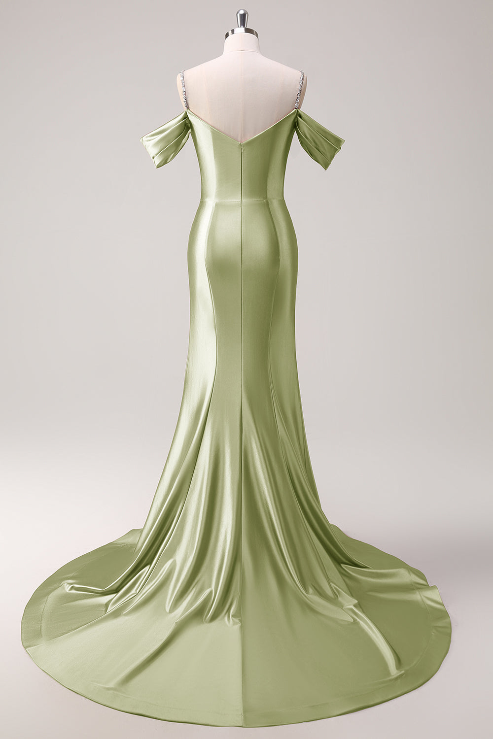 Sparkly Golden Mermaid Cold Shoulder Pleated Long Prom Dress With Sequins