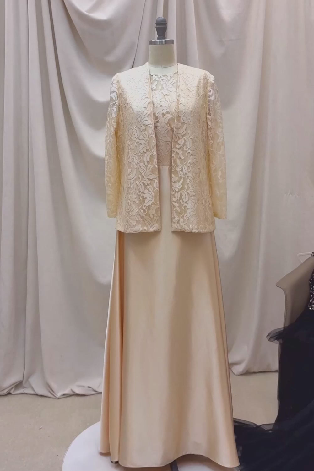 Champagne Satin A Line Two Pieces Mother Of The Bride Dress