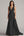 Black V Neck Ruffled A Line Formal Dress With Slit