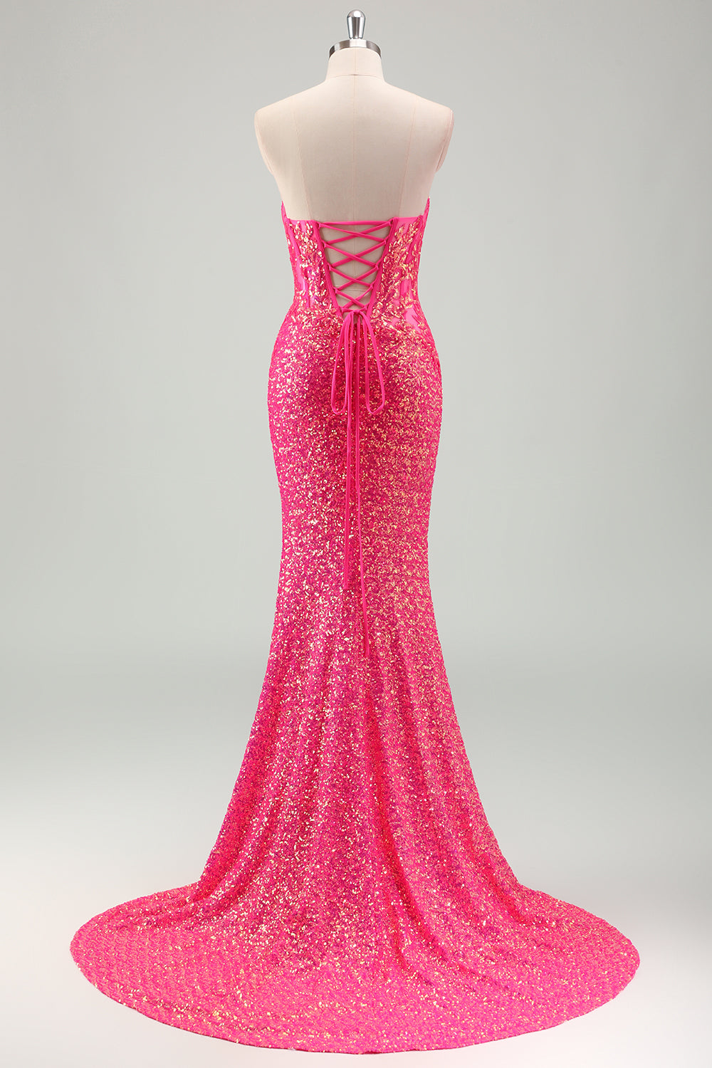 Sparkly Fuchsia Mermaid Sweetheart Corset Sequins Long Prom Dress with Slit