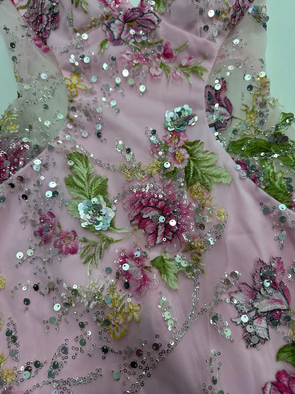Sparkly Sequins Pink Spaghetti Straps Bodycon Short Floral Homecoming Dress