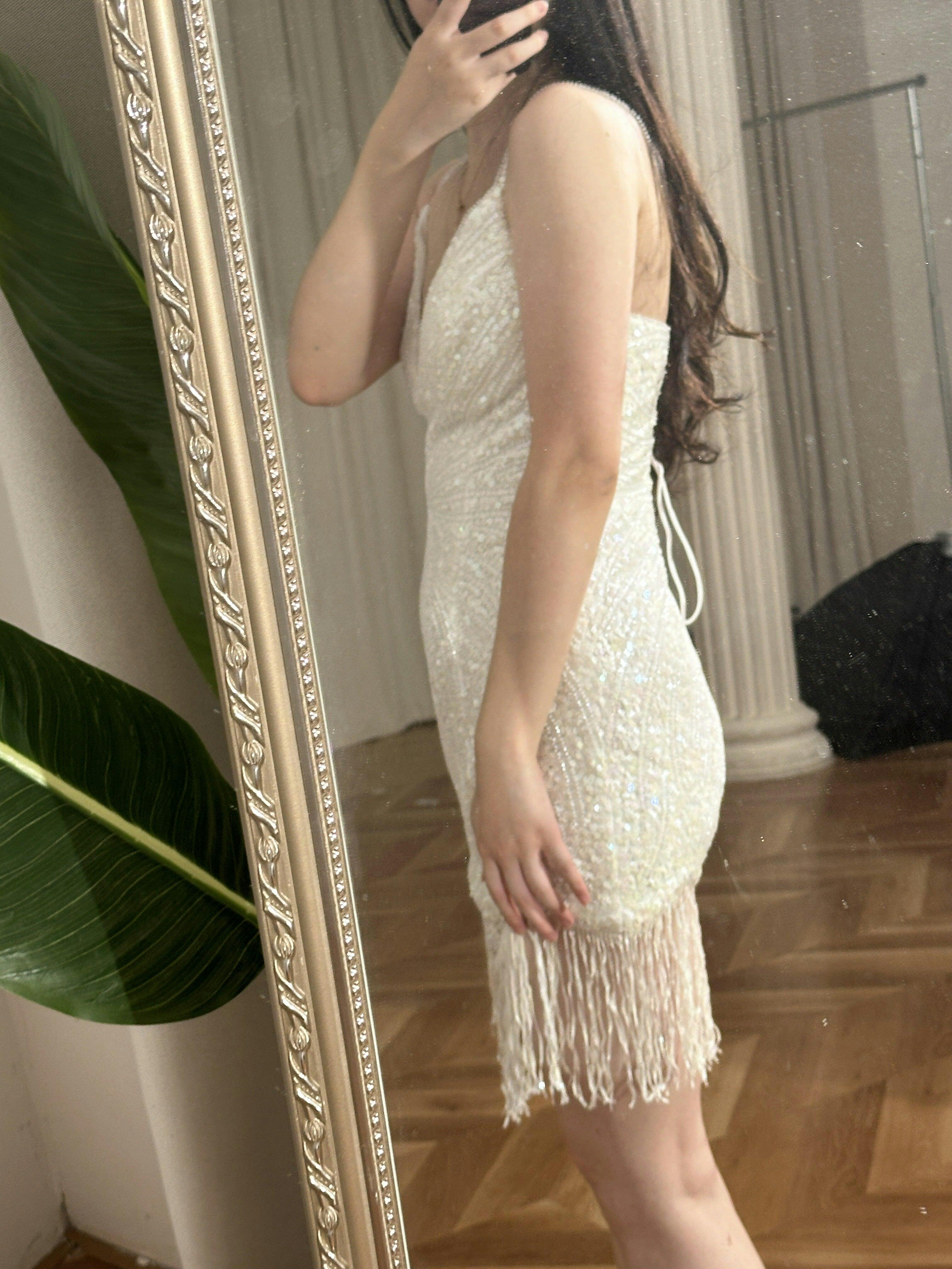 Sparkly White Bodycon Lace-Up Back Beaded Short Homecoming Dress with Tassel