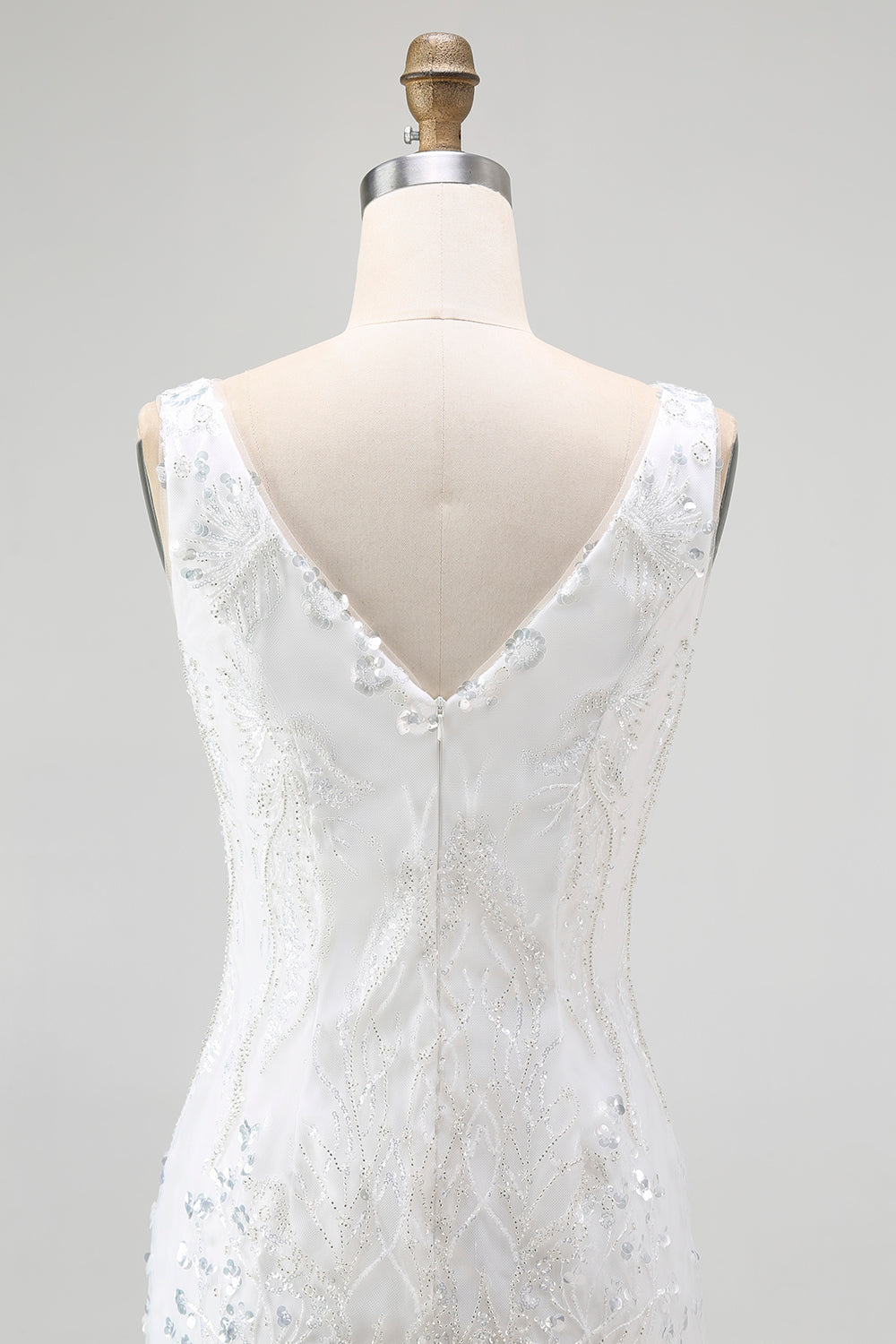 Sparkly White V-Neck Bodycon Short Homecoming Dress With Sequins