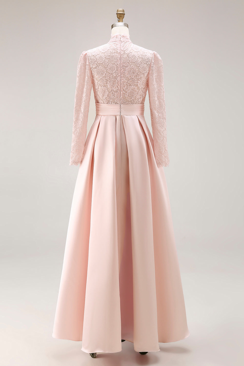 Candy Pink Lace A Line Satin High Neck Long Sleeve Mother of the Bride Dress
