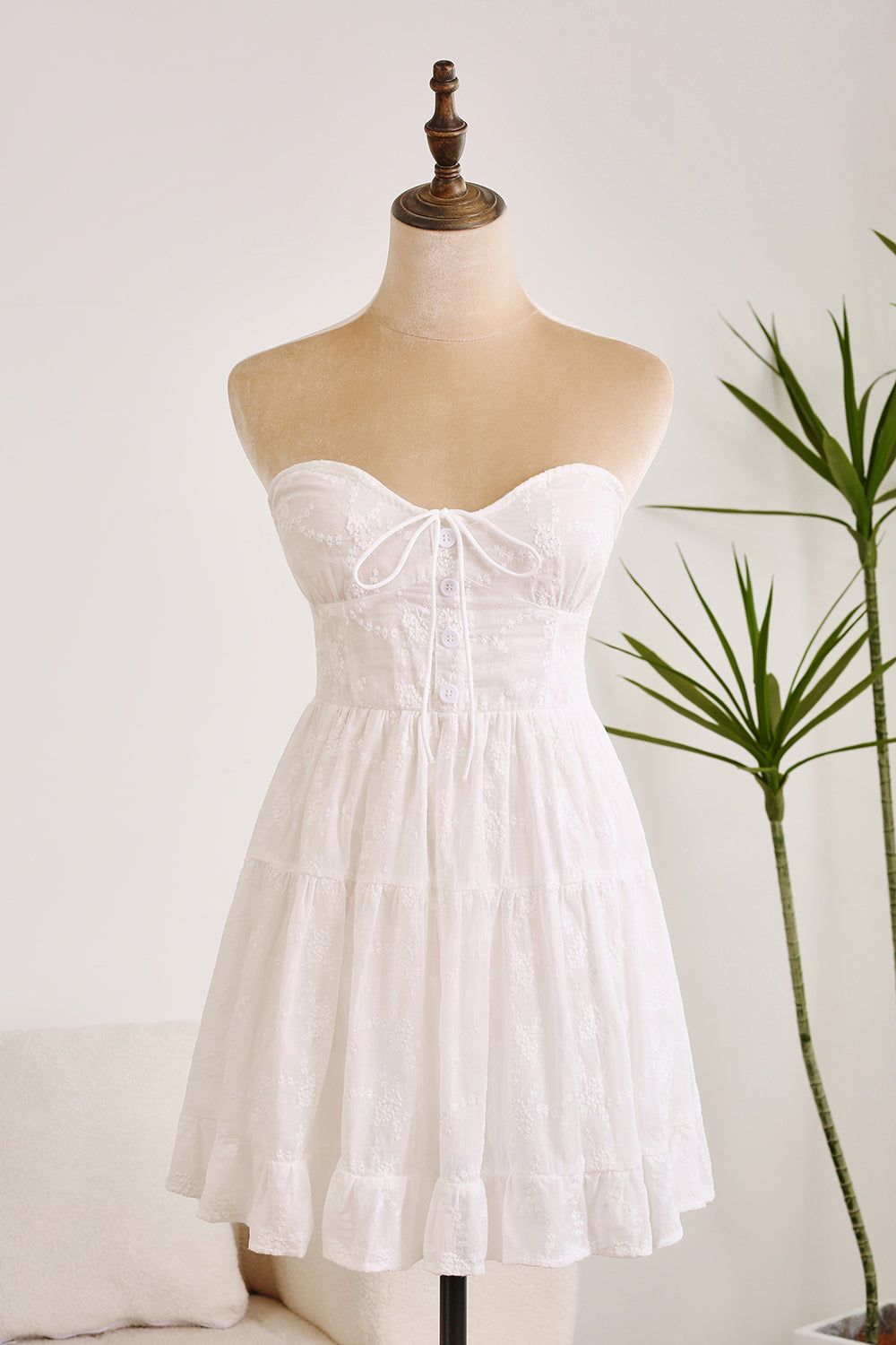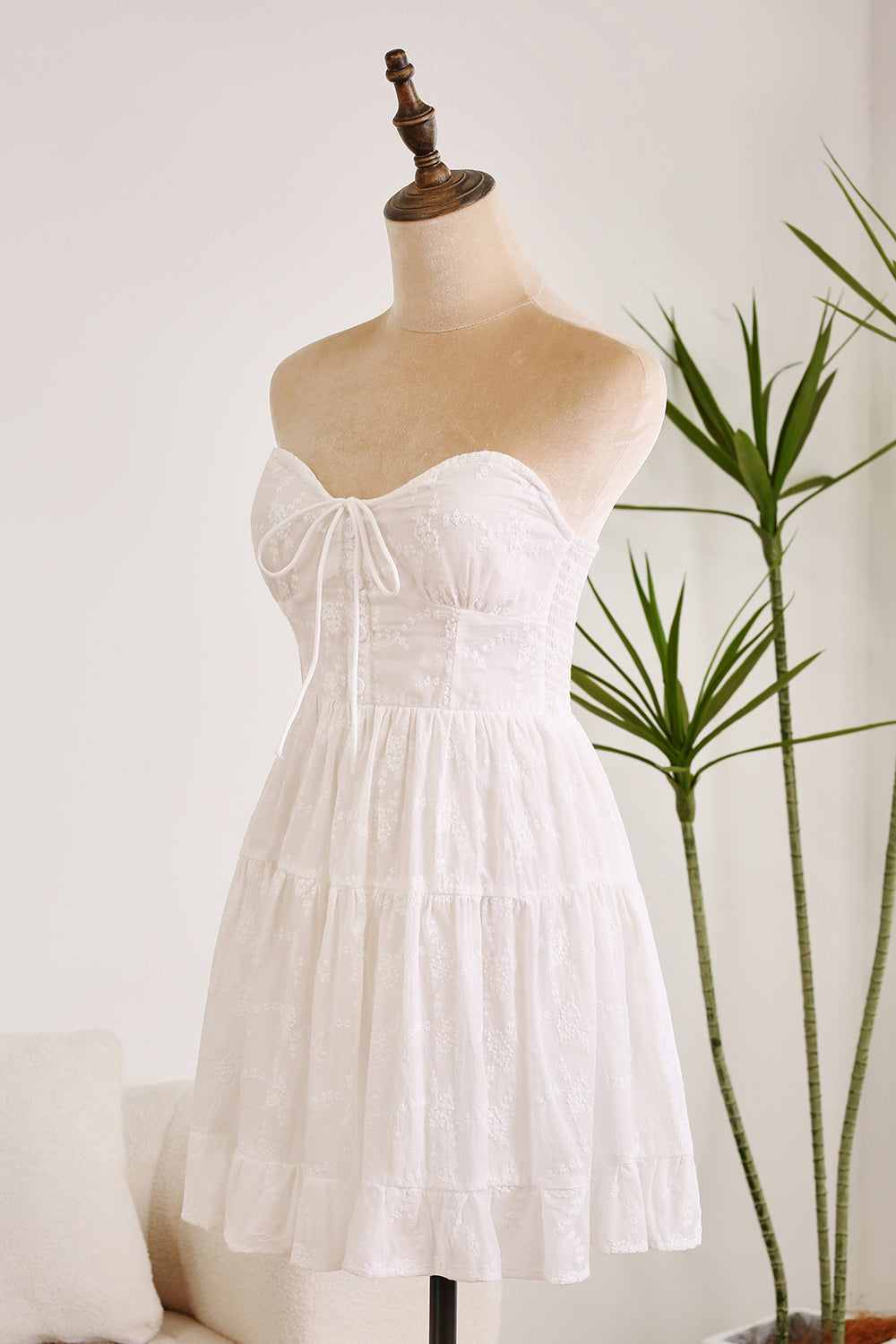 Simple Sweetheart Lace Up White Short Graduation Dress With Lace