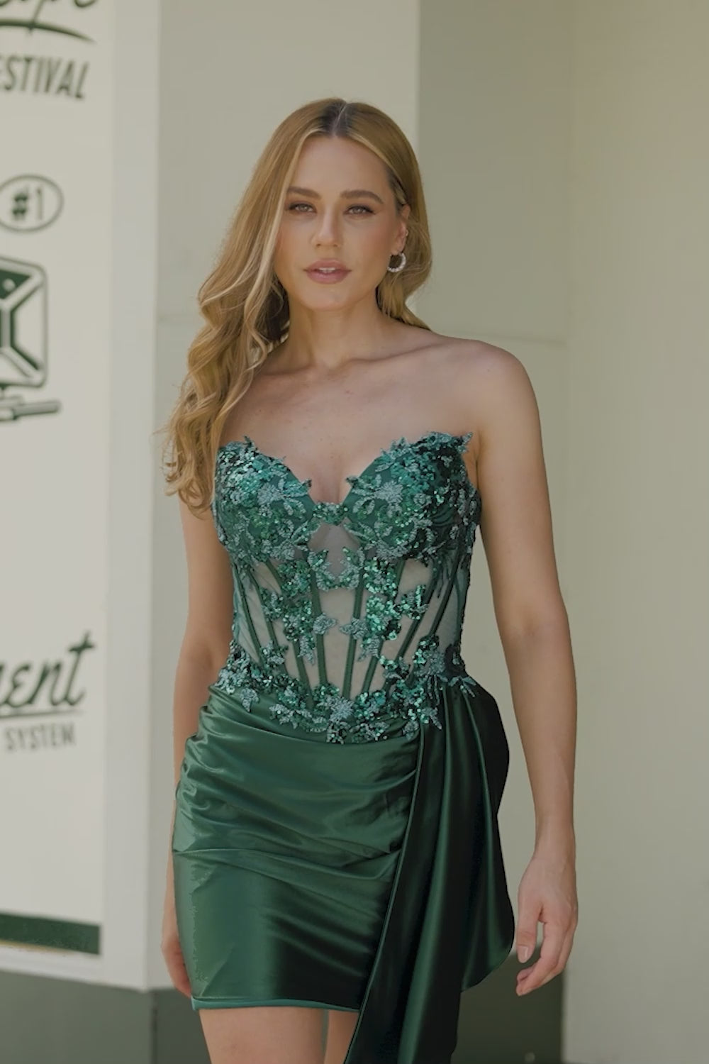 Dark Navy Strapless Sequins Tight Short Homecoming Dress with Side Cape