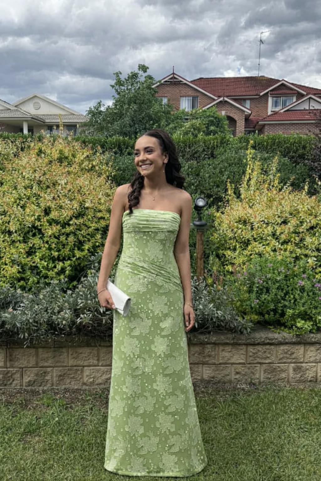 Sage Green Sheath Strapless Ruched Maxi Bridesmaid Dress with Side Slit