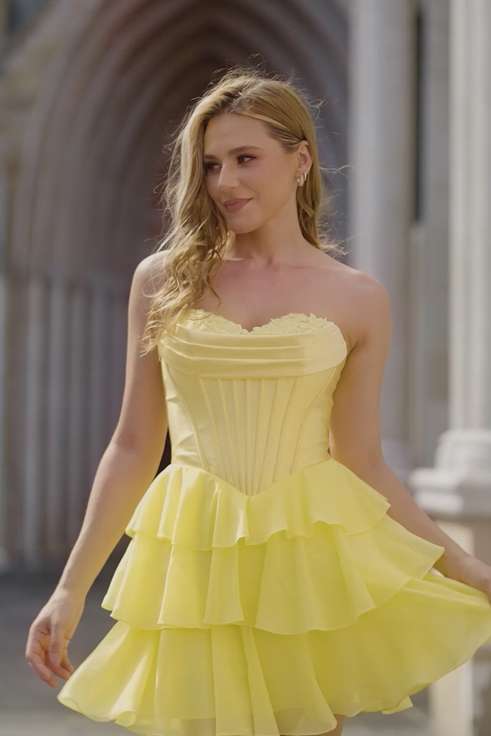 Yellow A-line Sweetheart Corset Tiered Short Homecoming Dress