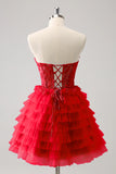 Lilac A Line Sweetheart Tiered Corset Lace Up Back Homecoming Dress with Beading