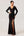 Black Mesh Sheath Cowl Neck Open Back Maxi Dress with Red Lining