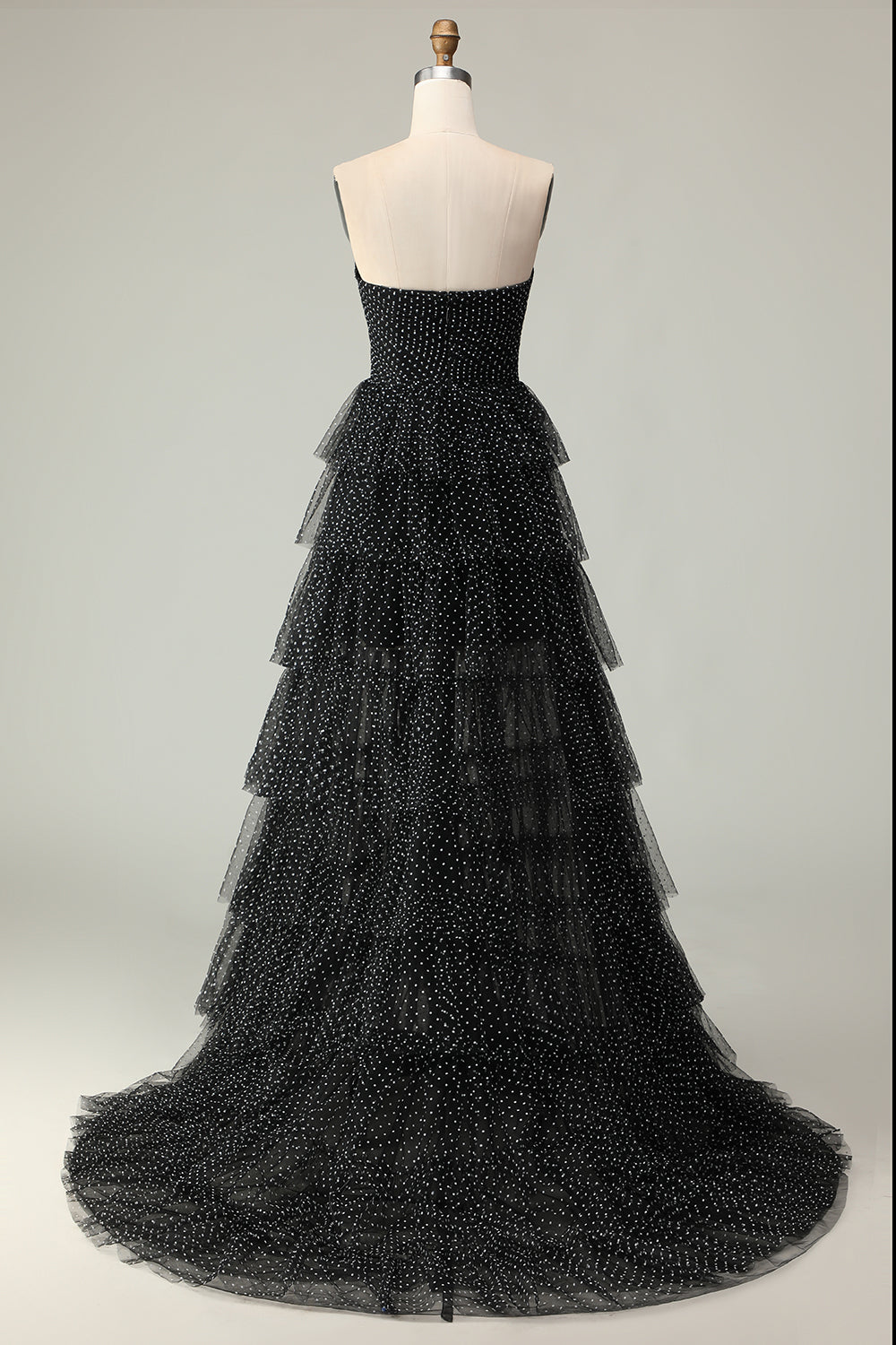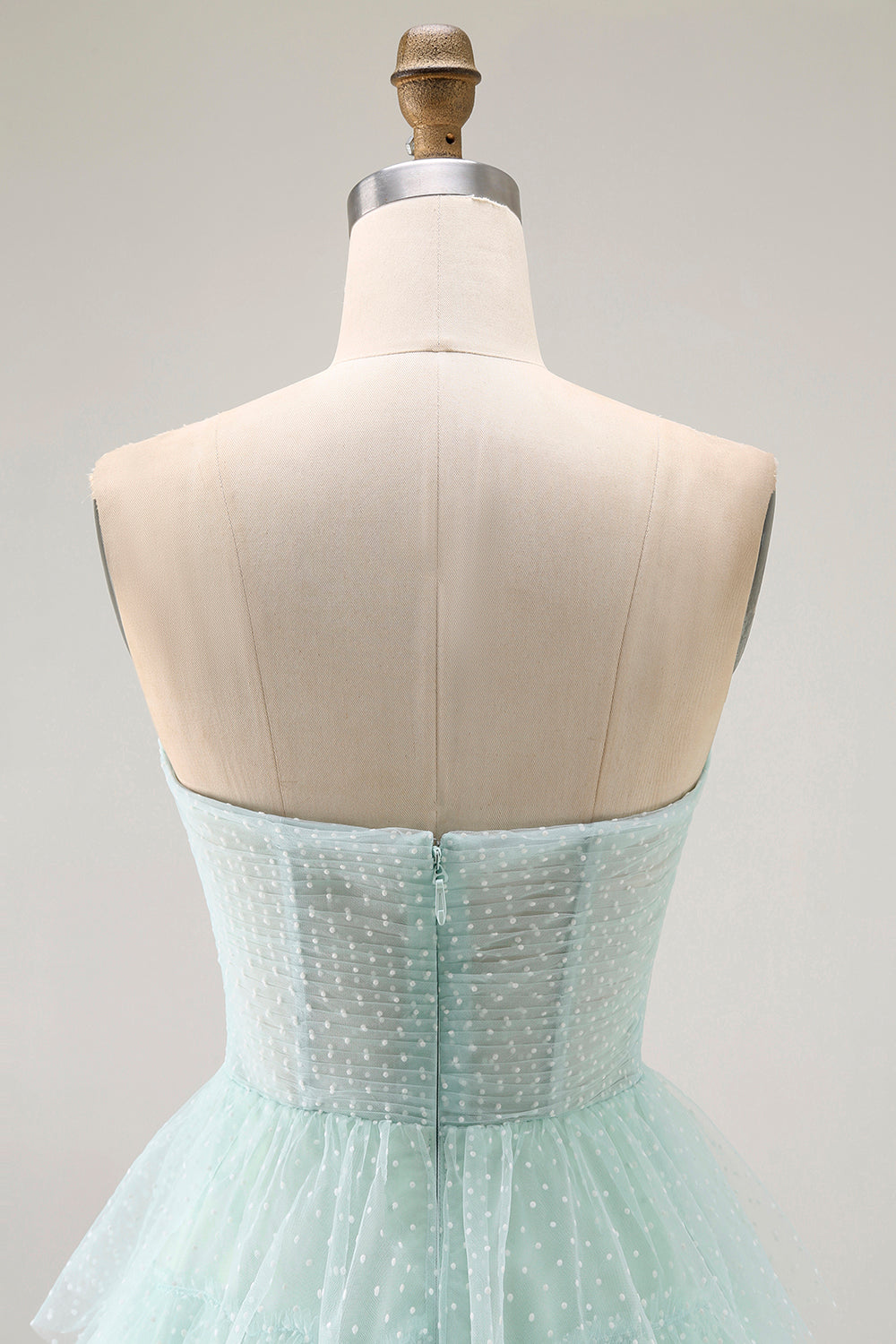 Light Green Sweetheart Tiered A-Line Corset Long Prom Dress with Slit