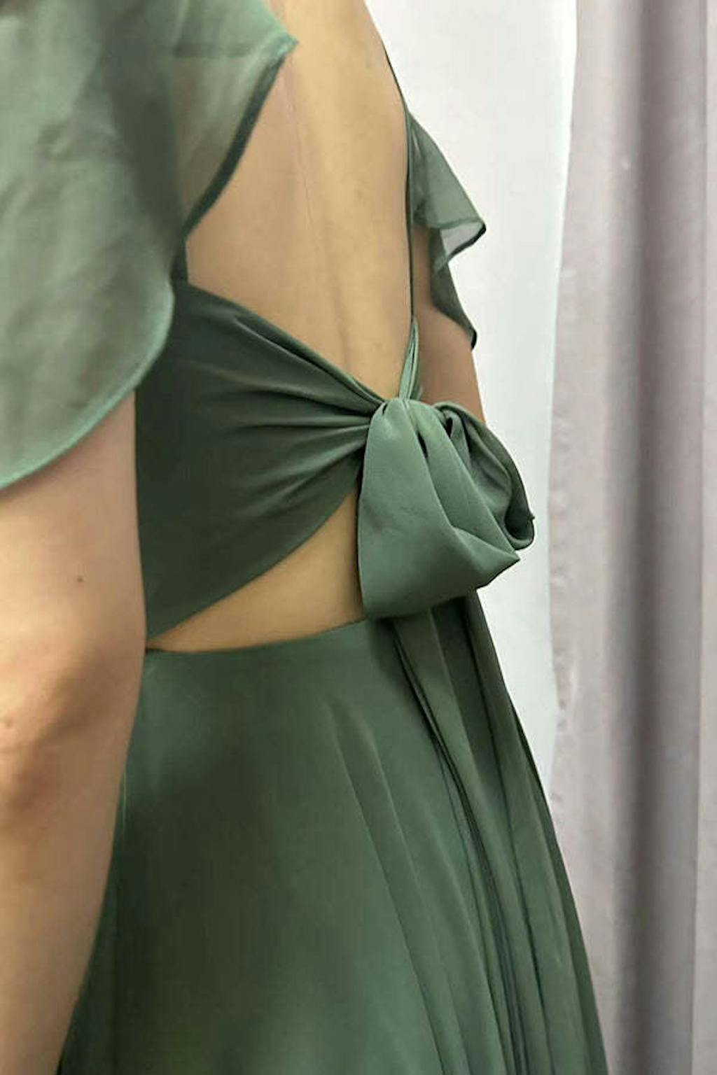 A Line Spaghetti Straps Long Chiffon Bridesmaid Dress With Slit
