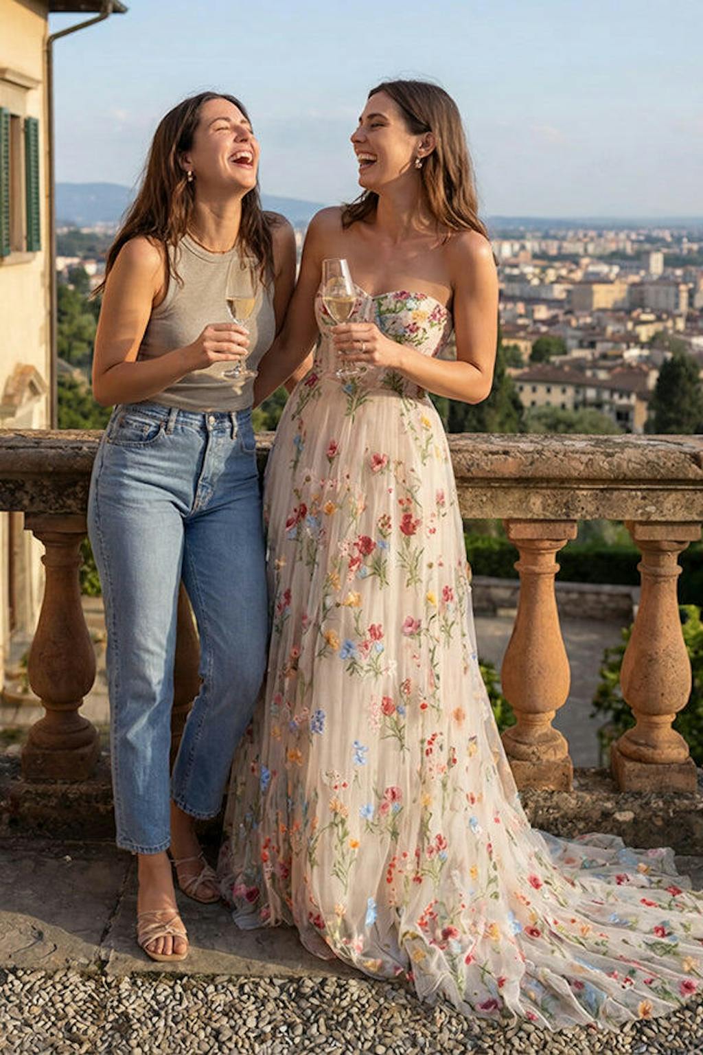 Was scared a strapless dress would be a disaster, but this one stayed UP ALL DAY! No slipping, no digging in—just me and my girl laughing in Tuscany. The color is chef’s kiss for my warm skin, and the details are impeccable. If you need a bridal shower dress, RUN to buy this.