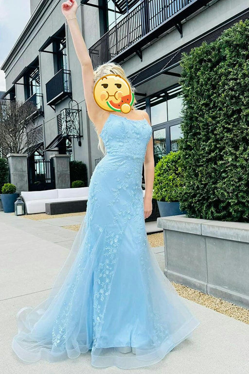 Blush Mermaid Spaghetti Straps Long Prom Dress with Appliques