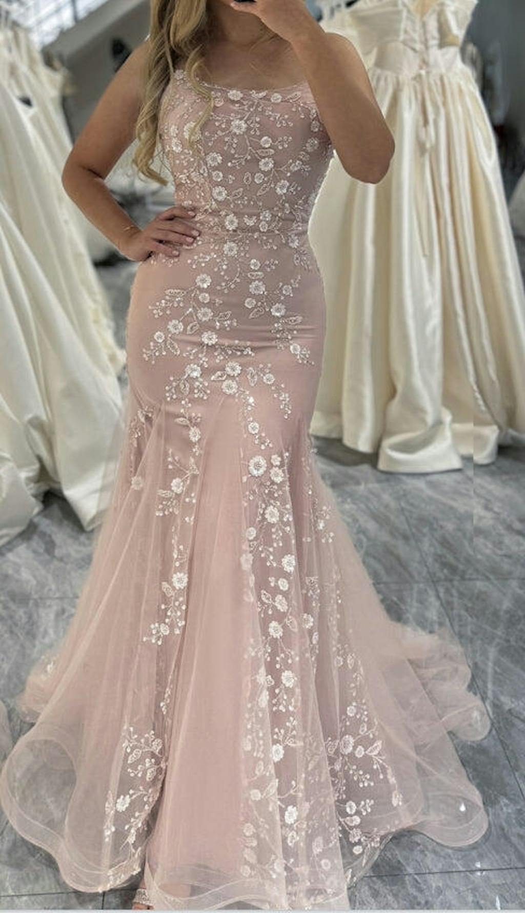 The mermaid fit is amazing.The beading and appliques are so detailed and elegant, and the dress shade is perfect for any formal event.