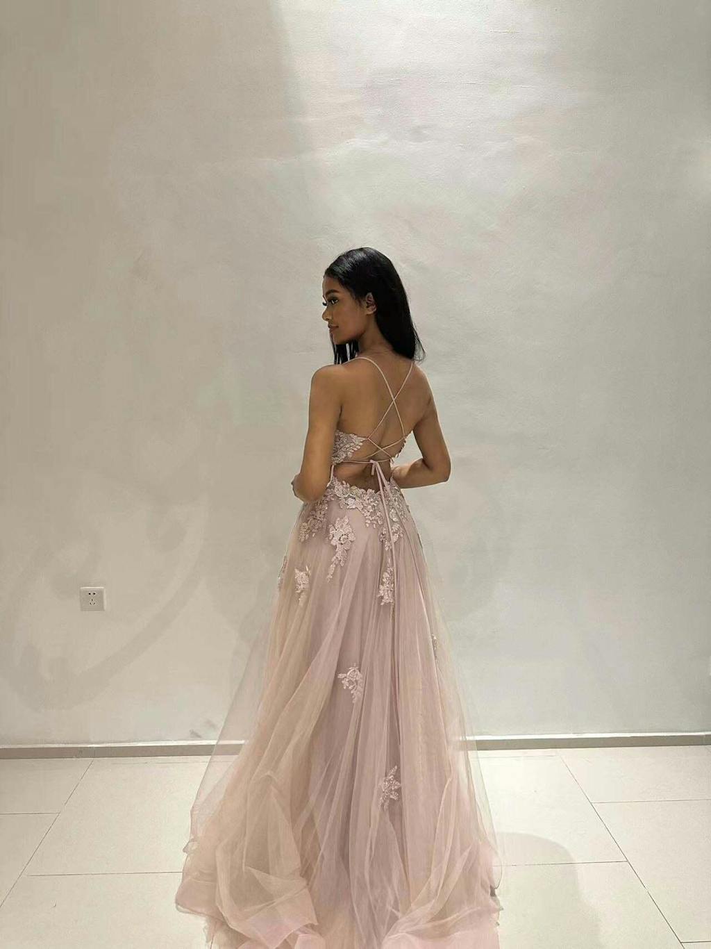 The dress is absolutely gorgeous and it seems well-made. The straps have to be tied so you can adjust them to be the right length to fit you.