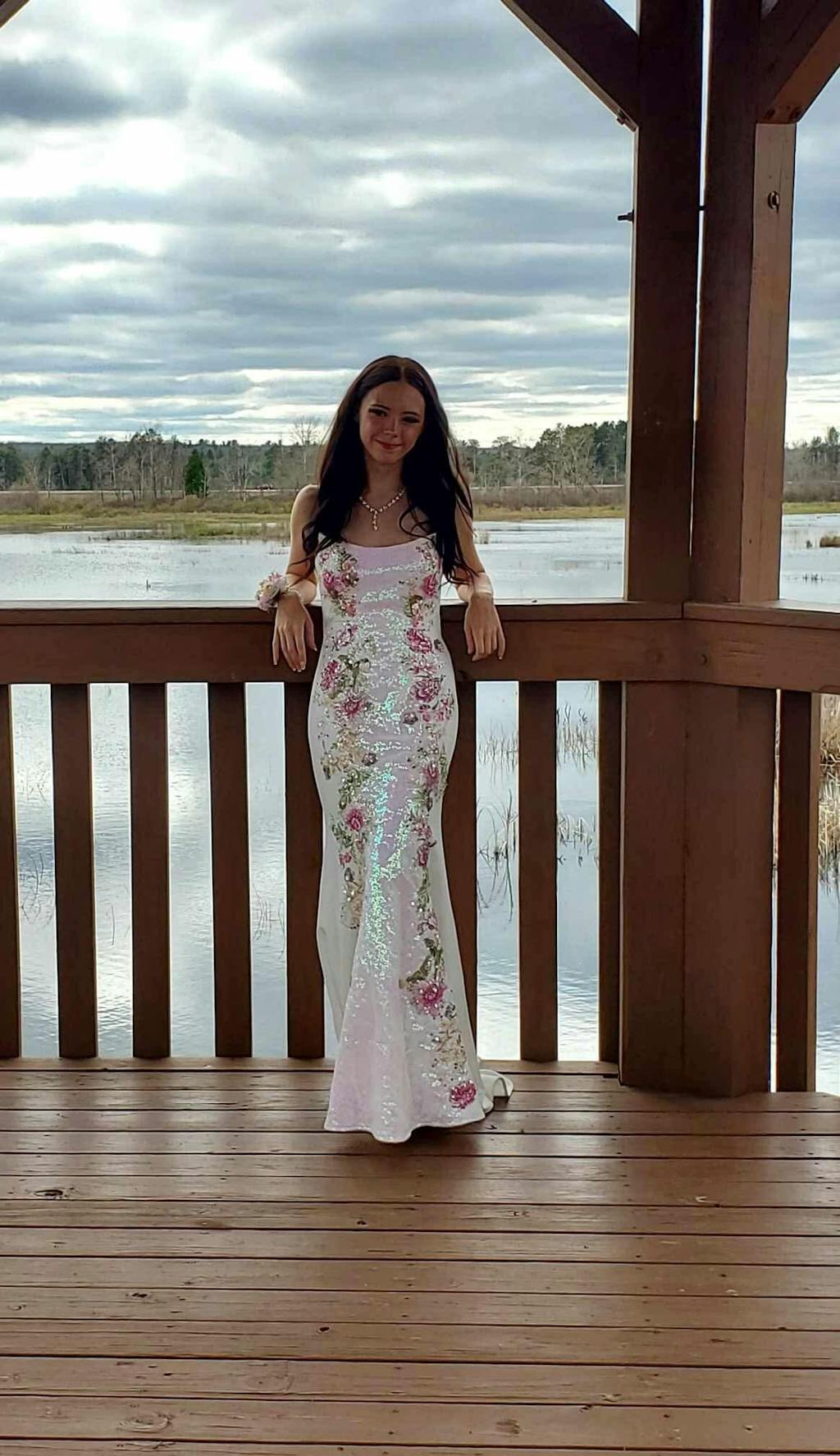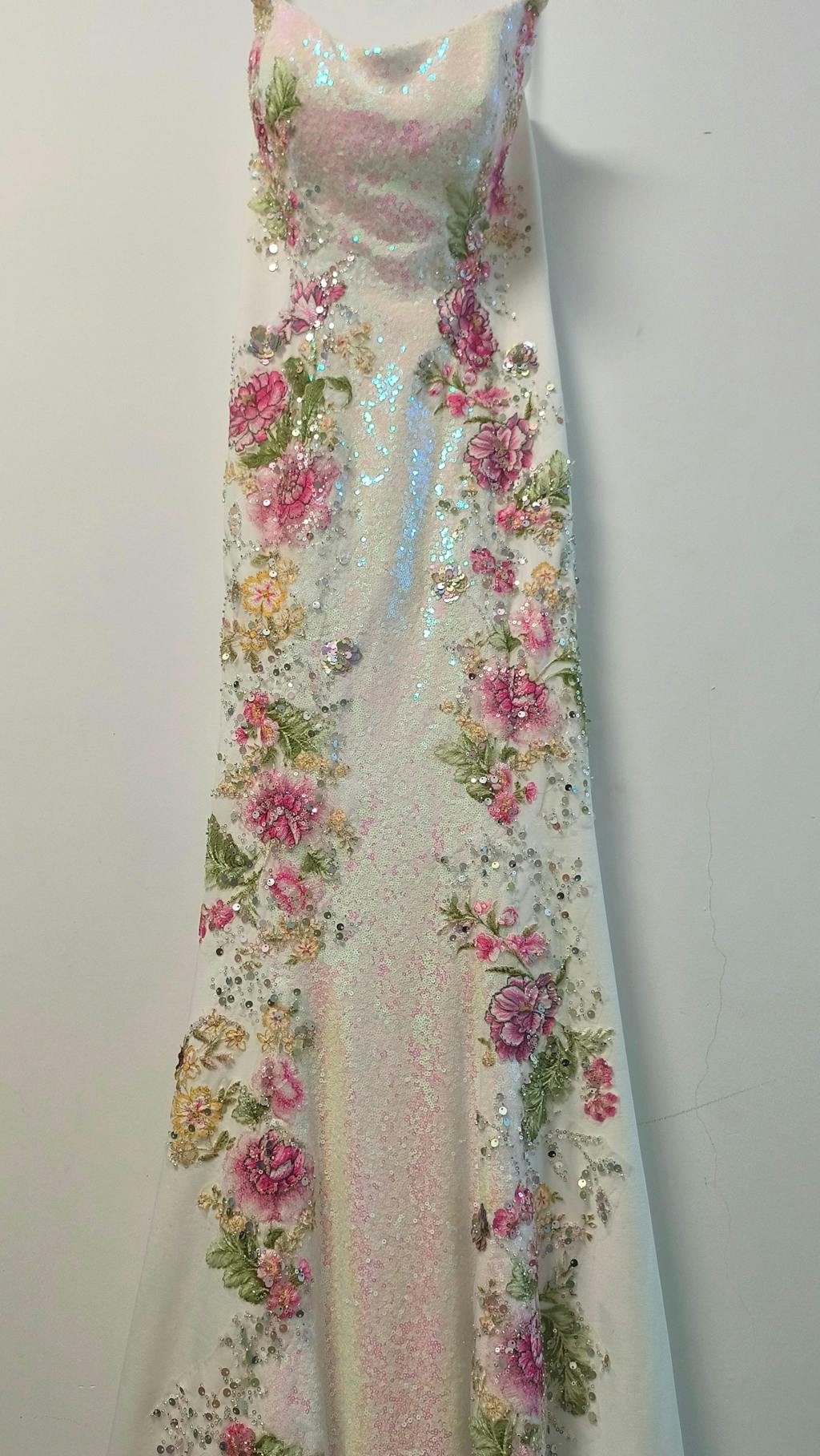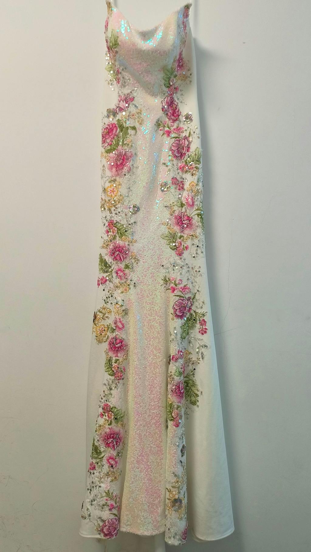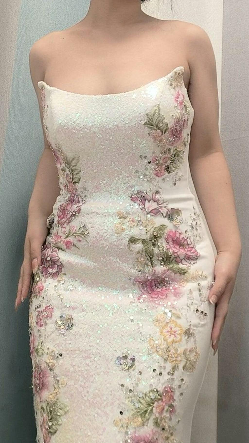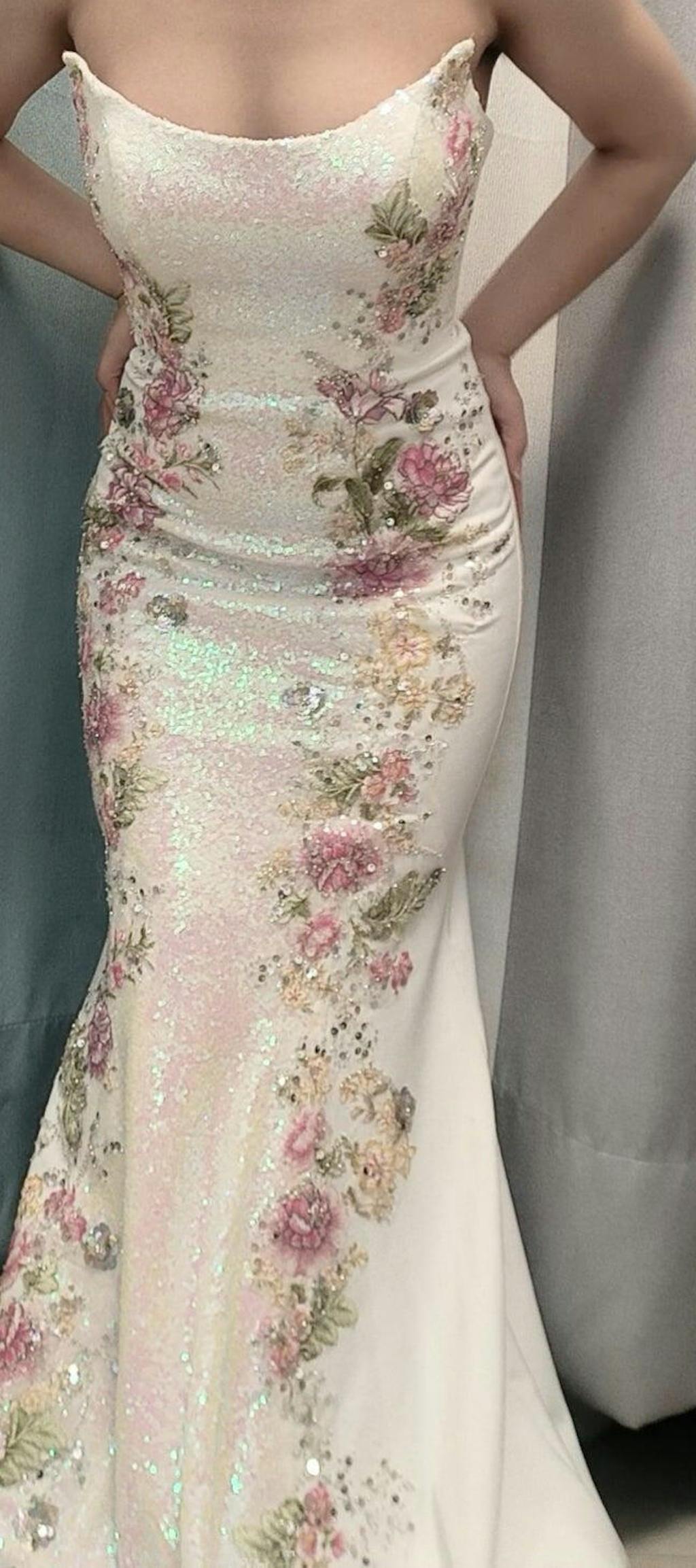 Sparkly White Floral Strapless Mermaid Long Prom Dress with Sequins