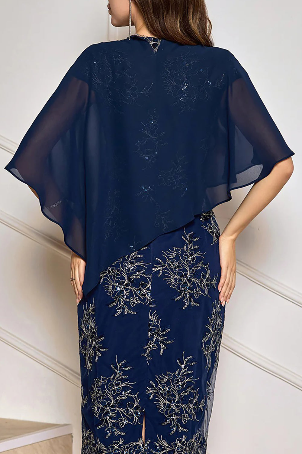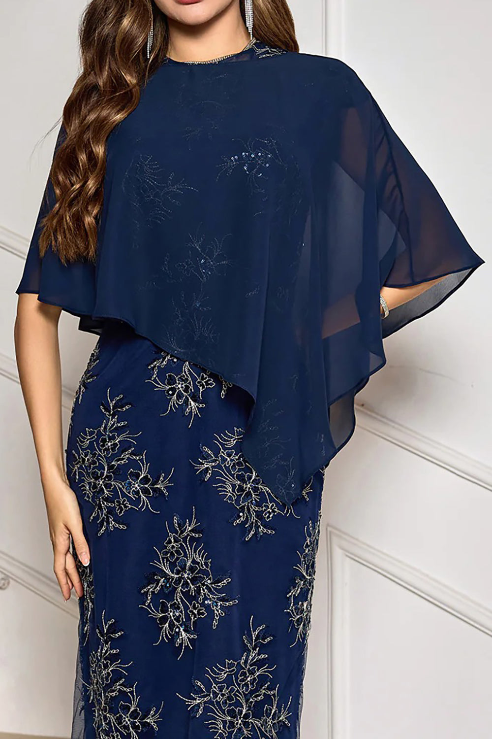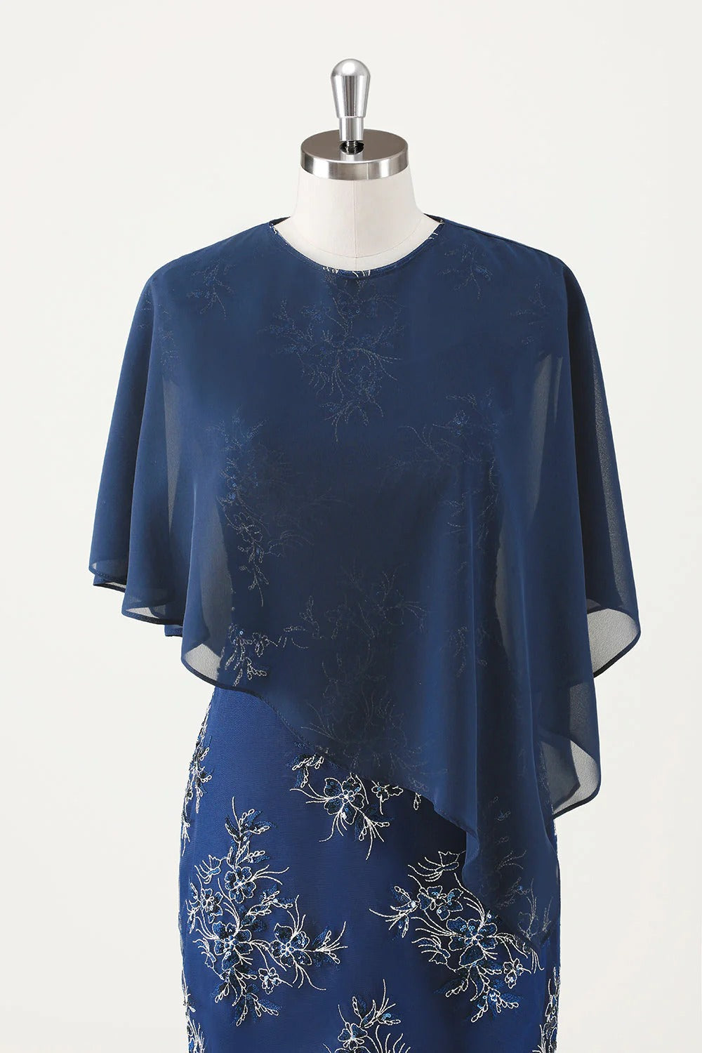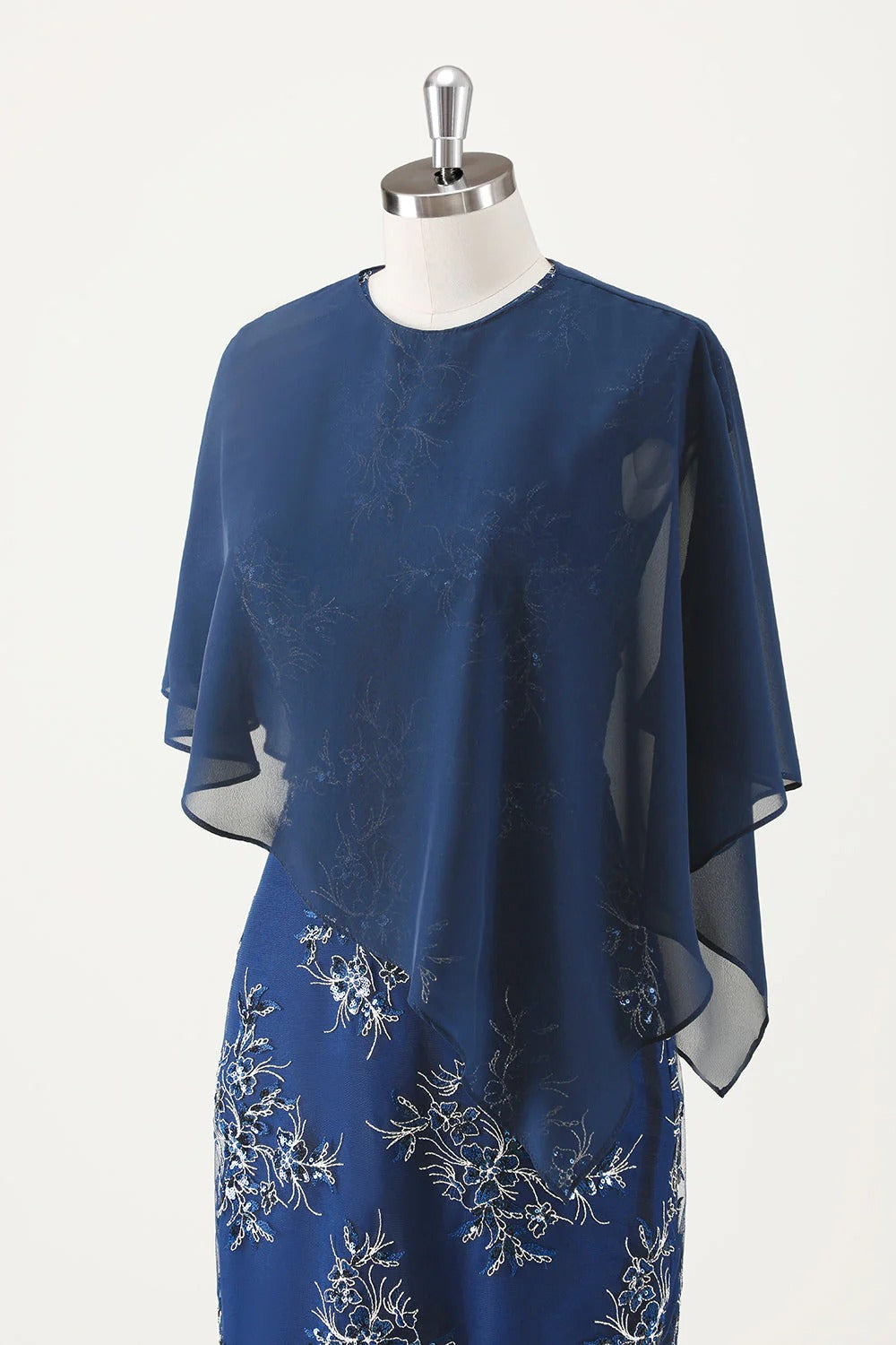 Navy Chiffon Capelet Cover Up for Mother of the Bride