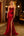 Red Mermaid Halter Beaded Lace Up Back Long Prom Dress with Slit