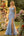 Blue A-Line Corset Removable Sleeves Appliqued Sequins Floral Long Prom Dress with Slit