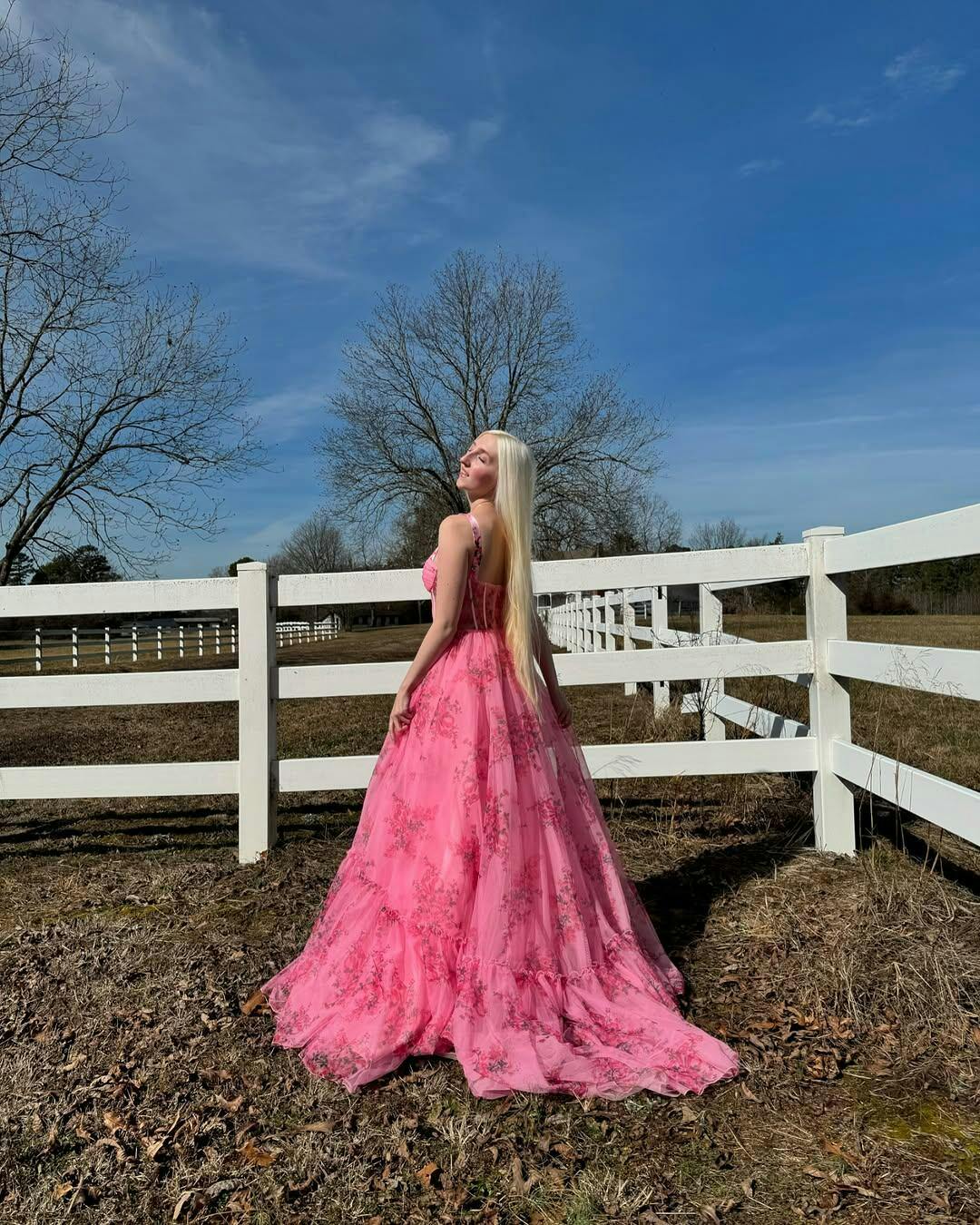 Blush Floral A Line Spaghetti Straps Corset Pleated Prom Dress