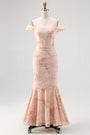 Champagne Sheath Lace Up Back Long Floral Burnout Dress with Slit