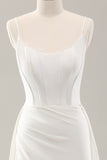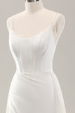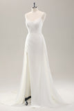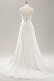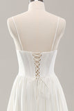 White A Line Spaghetti Straps Corset Lace Up Back Wedding Dress with Slit