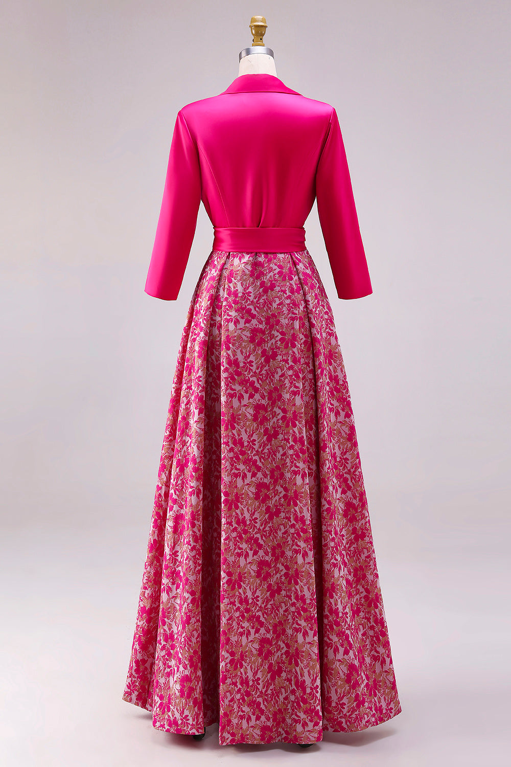 Fuchsia Flower Jacquard A-Line Bowed Mother Of The Bride Dress with Bow
