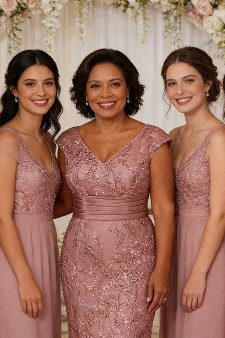 Wore this dress as the mother of the bride! The sequin bodice sparkled without being over-the-top, the V-neck was flattering and modest. I stood for hours of photos, and received endless compliments—my daughter cried when she saw me!