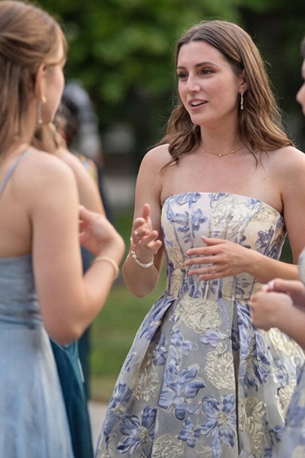 If you need a prom dress that’ll make everyone gasp, THIS IS IT. The blue jacquard print is so rich and luxe, and the strapless fit stayed locked in all night—no slipping, no panicking. My friends kept yelling “SLAY” every time I spun. Obsessed is an understatement.