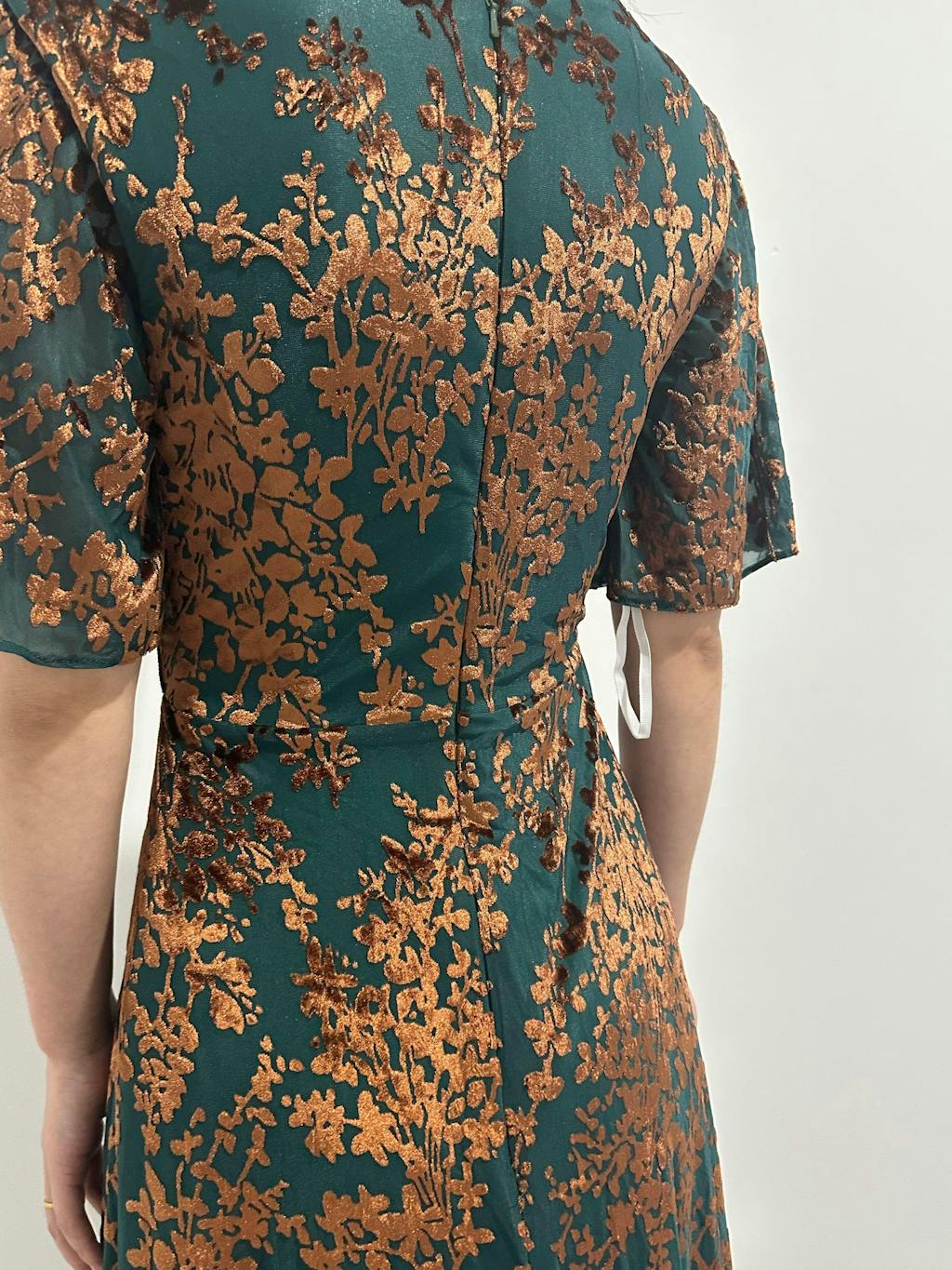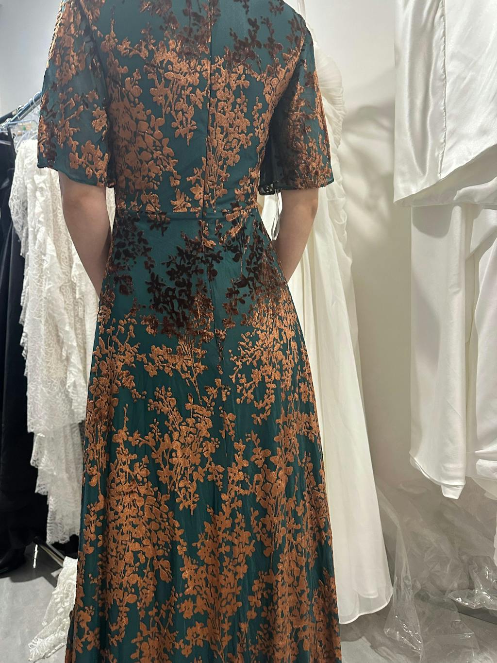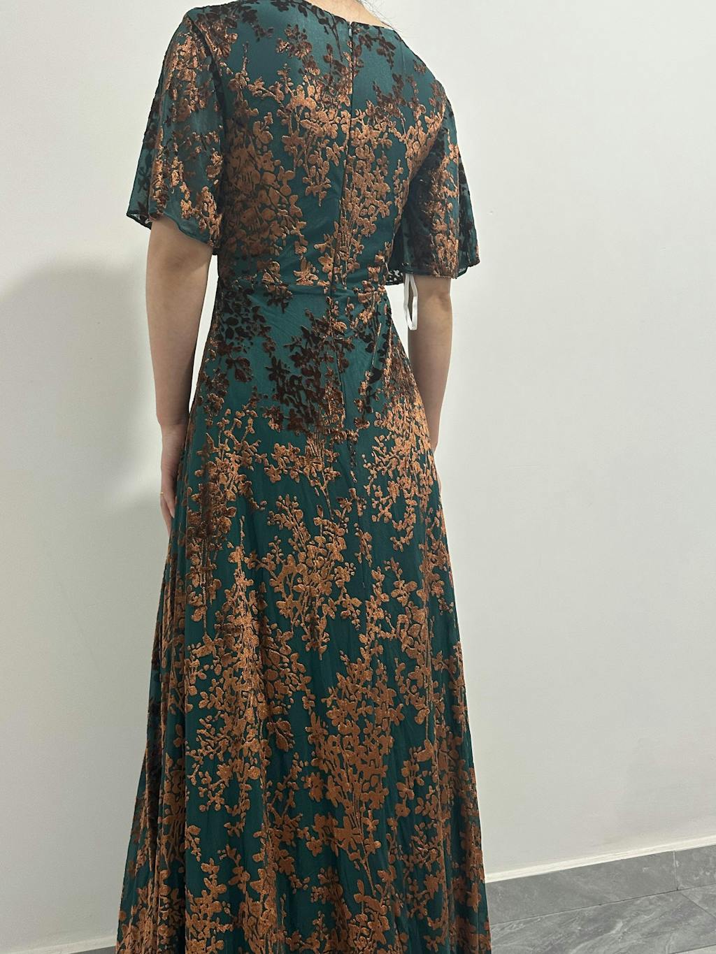 Wore this to a winter wedding and felt perfect! The velvet is warm enough for the season but the burnout detail keeps it from feeling heavy. The V-neck is very becoming, and the A-line dress flows beautifully. The floor length is so elegant. Highly recommend!