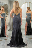 Black Mermaid Sweetheart Long Sparkly Beaded Prom Dress With Slit