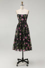 Black Pink Floral Tiered Chiffon Long Bridesmaid Dress with Adjustable Straps