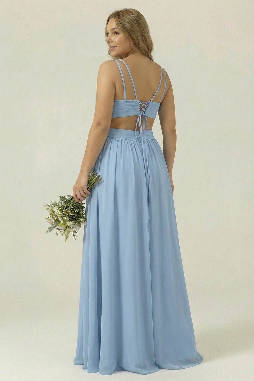 Dusty Blue A Line V Neck Chiffon Long Plus Size Bridesmaid Dress