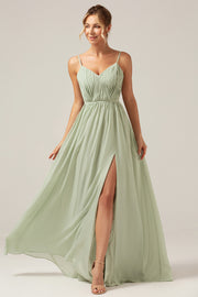 Dusty Sage A Line Spaghetti Straps Pleated Maternity Bridesmaid Dress