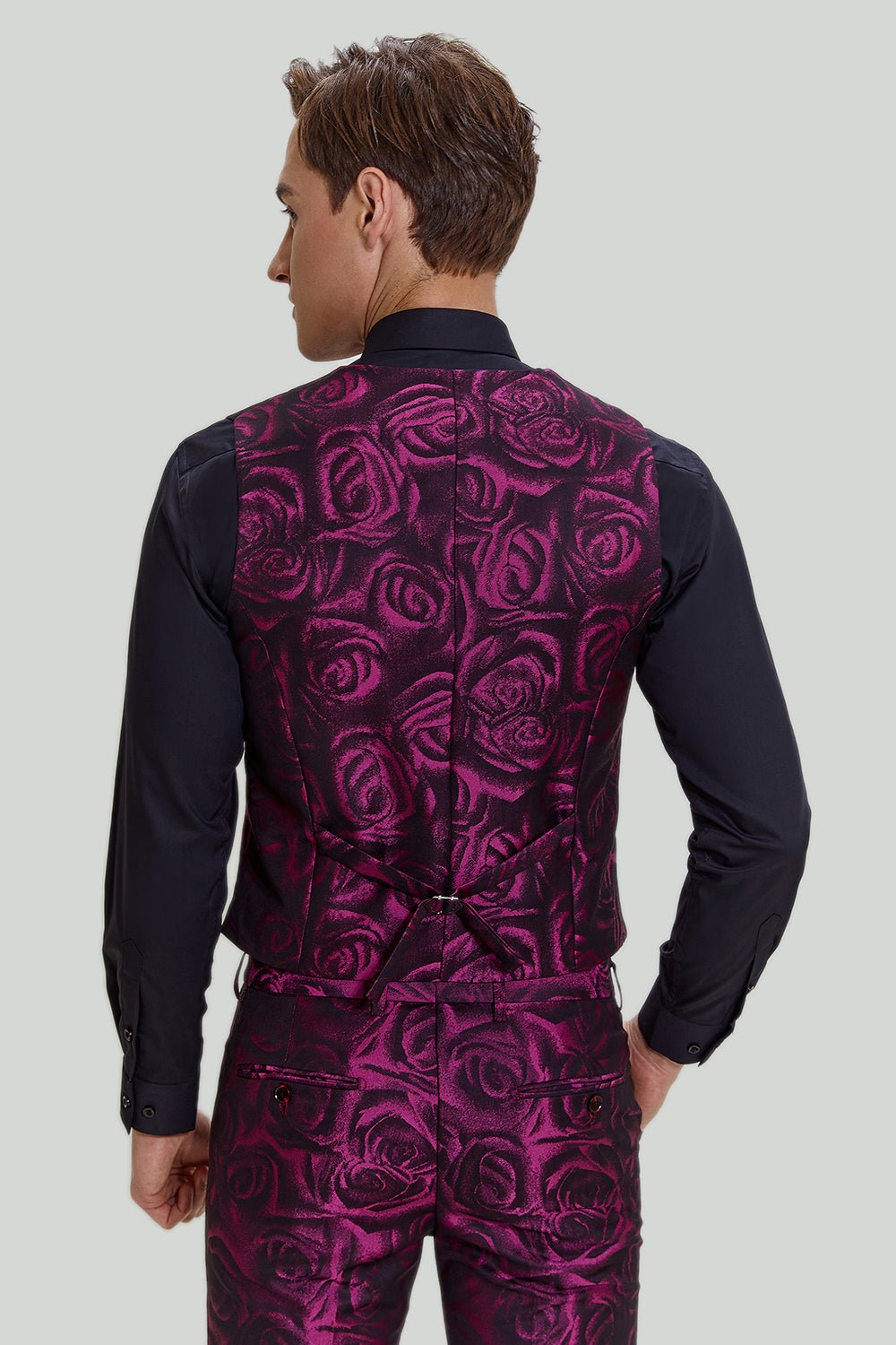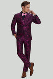 Men's Fuchsia Floral Jacquard 3 Piece Prom Notched Lapel Suits