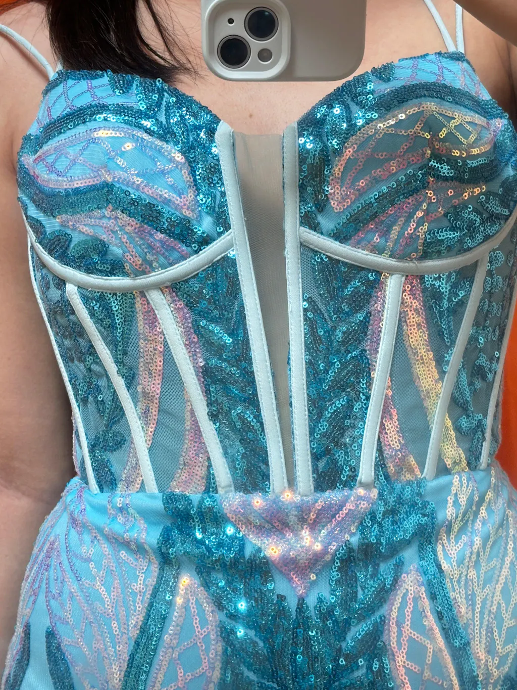 The dress is gorgeous and fits perfectly. I’m very pleased.