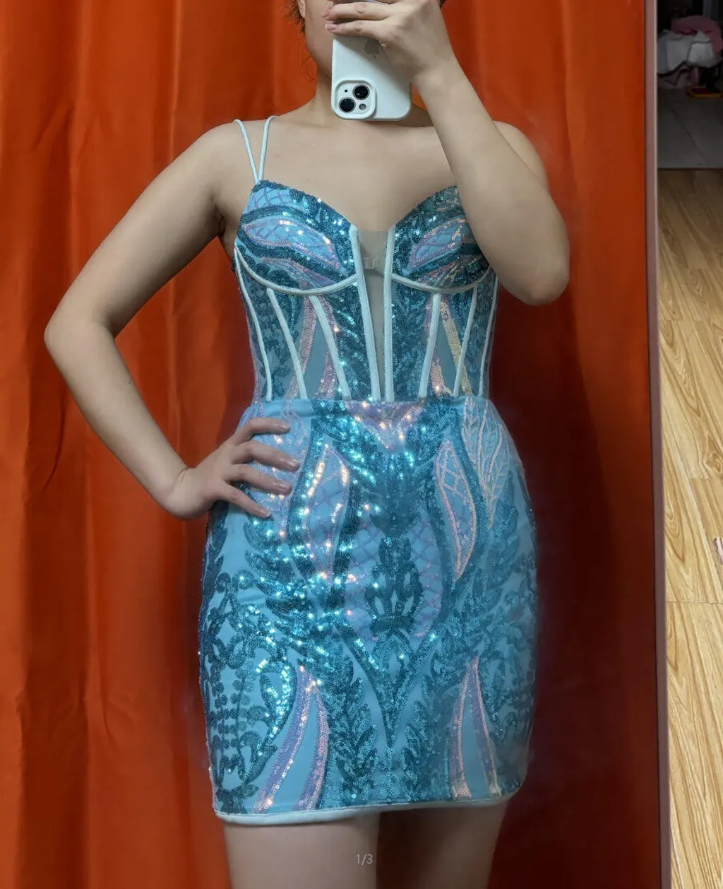 Gorgeous Blue Bodycon Spaghetti Straps Corset Homecoming Dress with Sequins