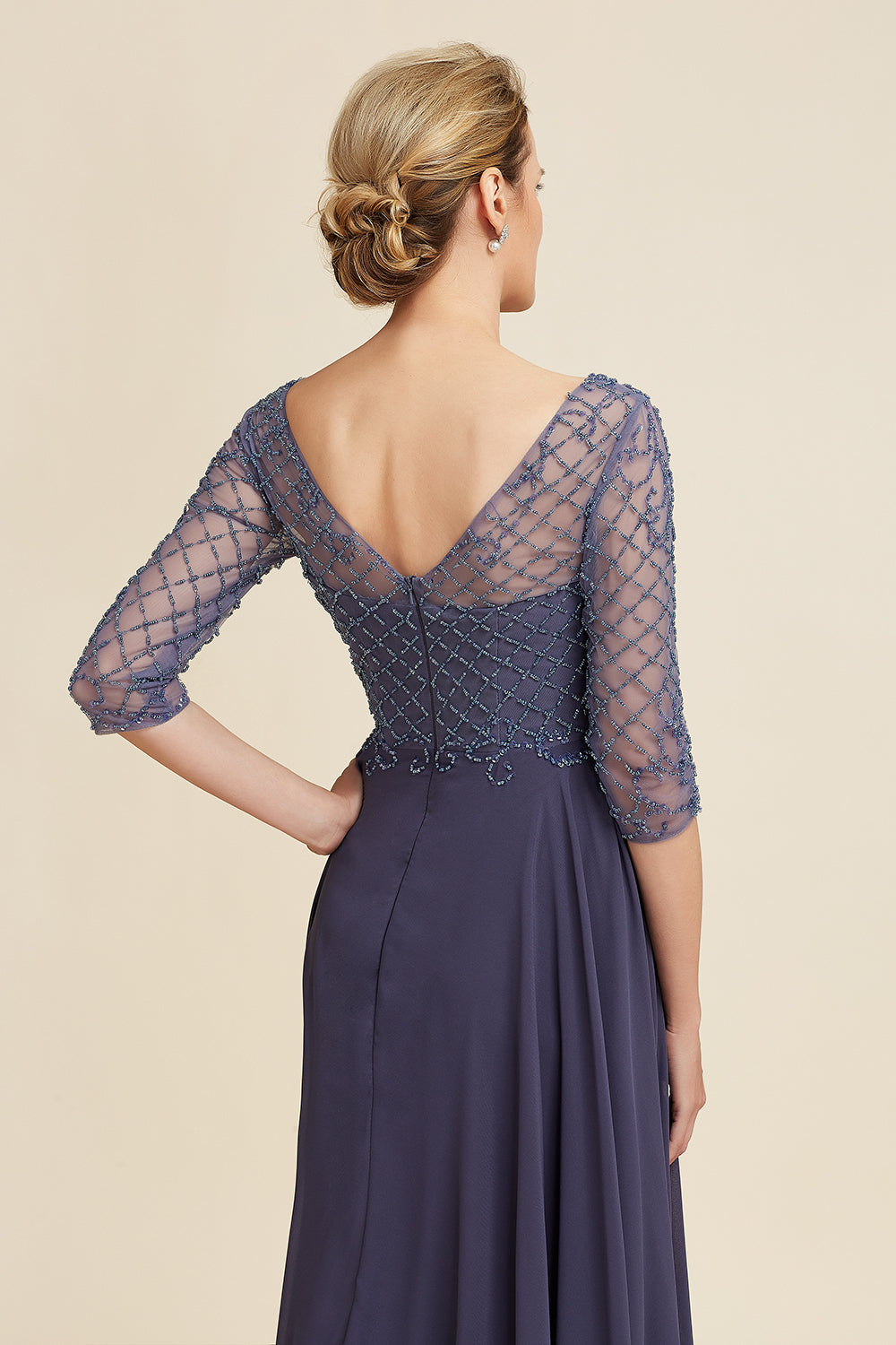 Sparkly Grey Blue Beaded Mother of the Bride Dress