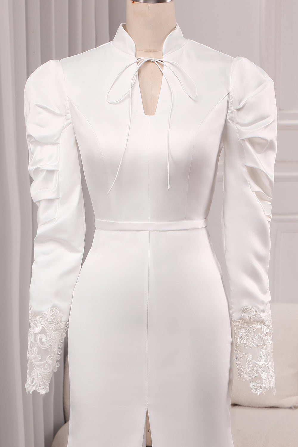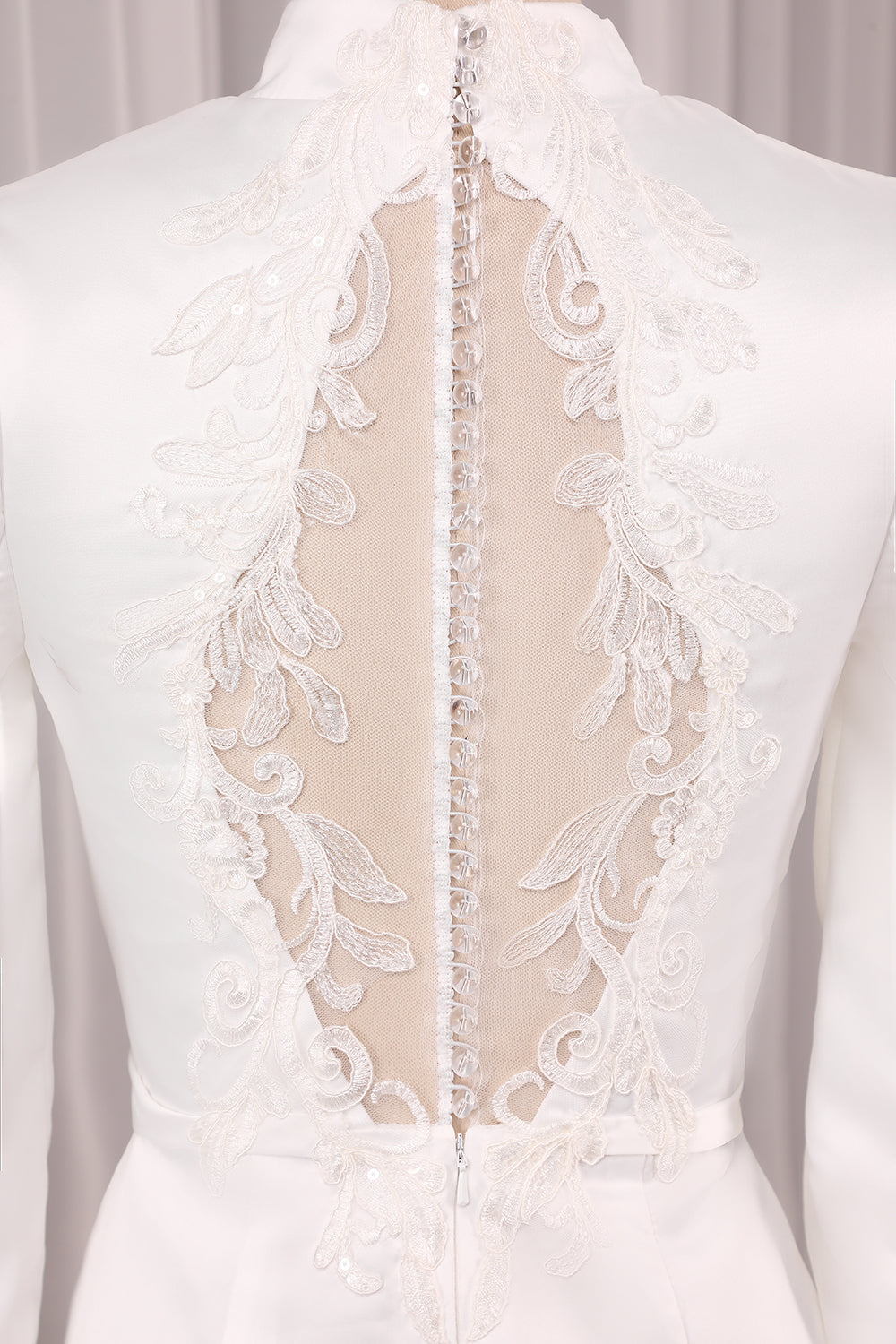 Elegant Ivory Mermaid High Neck Long Sleeve Modest Wedding Gown