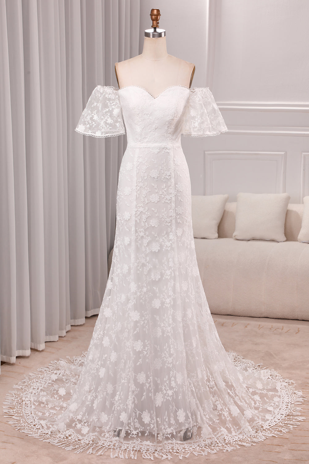 Ivory Mermaid Sweep Train Lace Wedding Dress