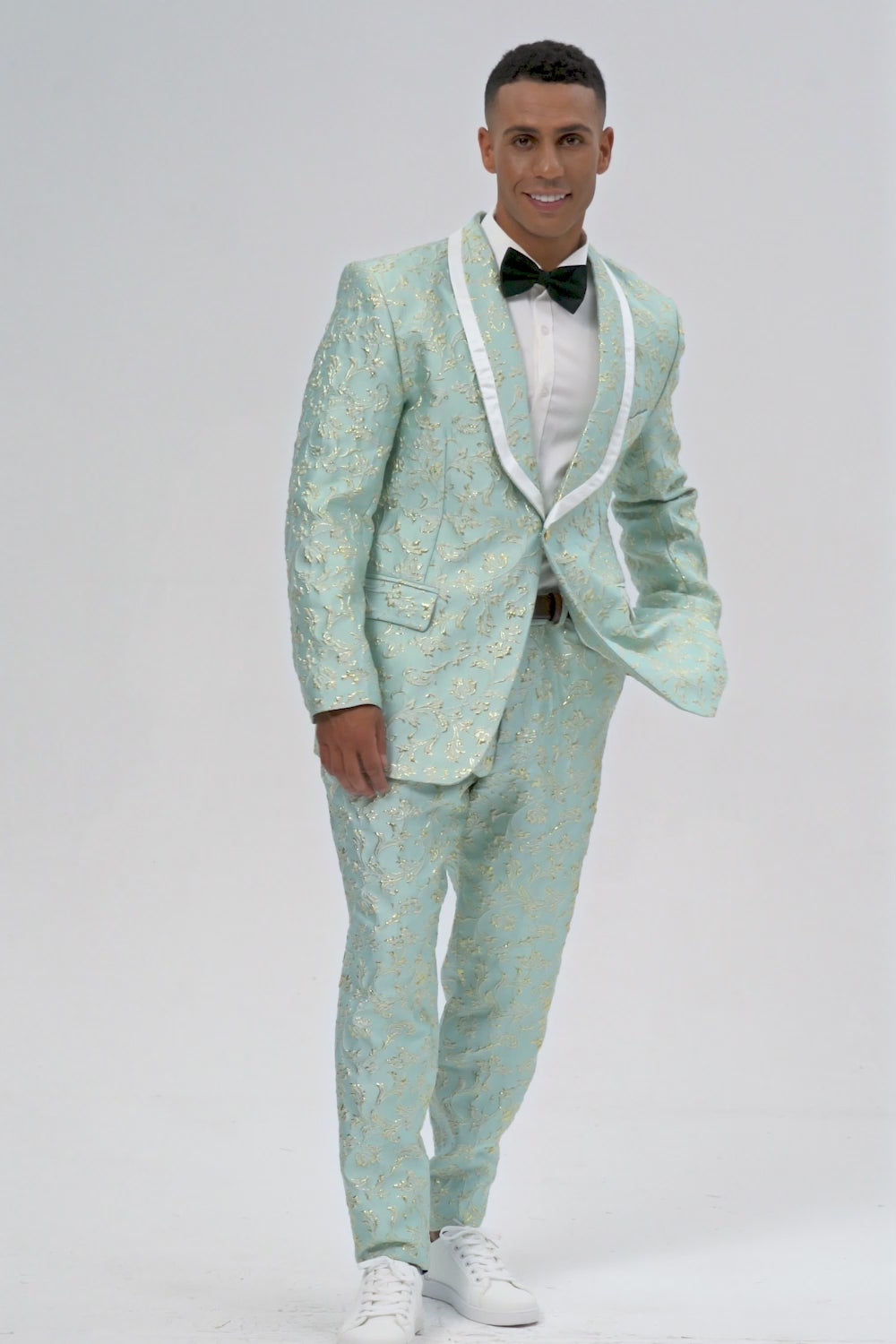 Men's Mint Shawl Lapel Jacquard One Button 2 Piece Prom Suits