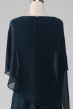 Navy A-Line Scoop Tea-Length Chiffon Mother of the Bride Dress